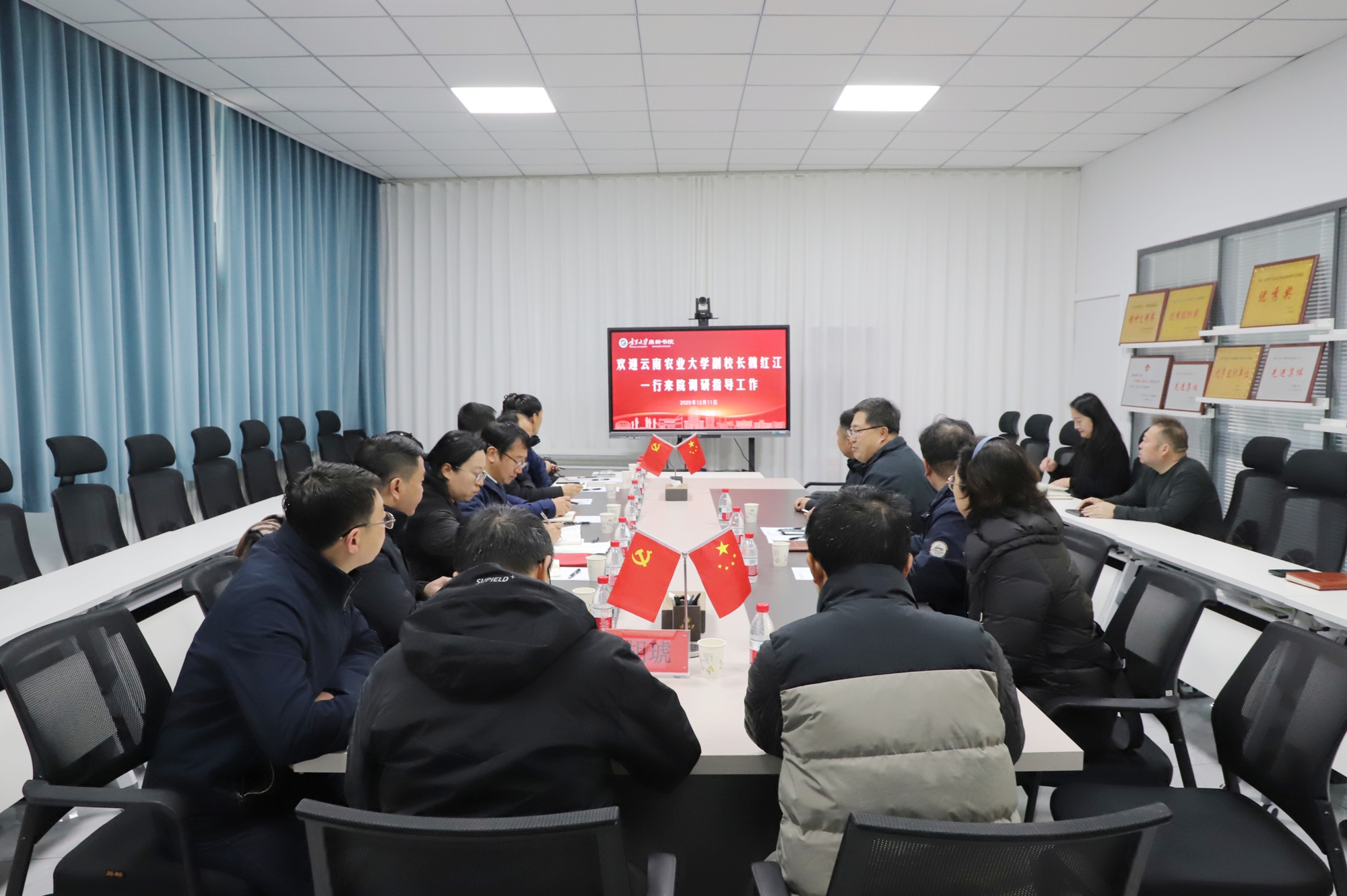 【永利集团304官网新闻中心讯 李明花/文 李明花、姬晓姗/图】12月11日,云南农业大学党委委员、副校长魏红江一行来校调研,校党委常委、副校长黄河参加座谈会。