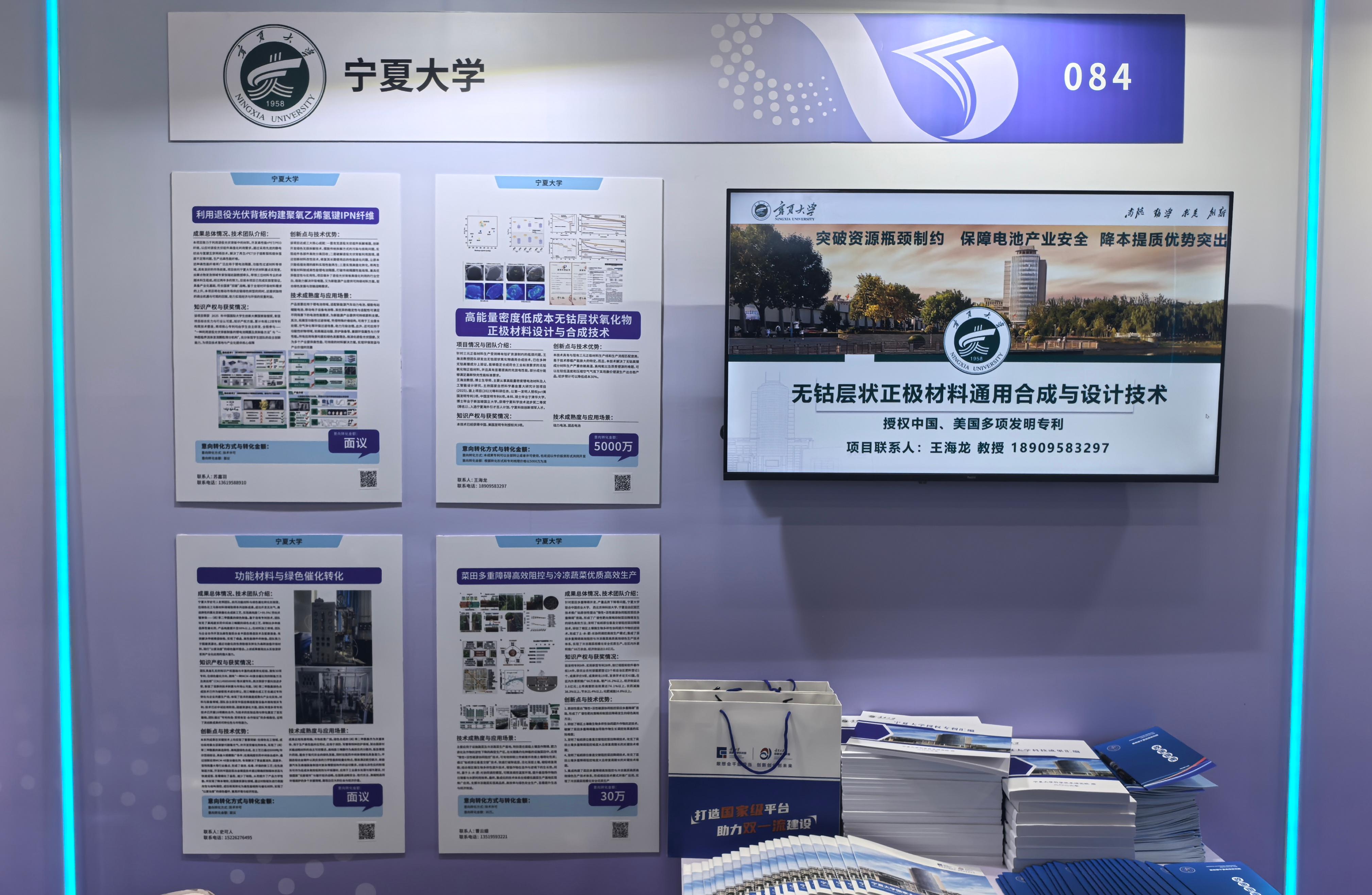 永利集团304官网携多项优质科研成果亮相本届科交会,通过视频播放的形式展示成果近100项,成果汇编、专利汇编的形式展示科研成果近2000项,专利近1500项。“高能量密度低成本无钴层状氧化物正极材料设计与合成技术”“功能材料与绿色催化转化”“利用退役光伏背板构建聚氧乙烯氢键IPN纤维”等材料领域创新成果,以及“菜田多重障碍高效阻控与冷凉蔬菜优质高效生产”等农业领域标志性成果,集中展示了学校在材料科学、现代农业等特色方向的科研积累与创新能力,彰显了学校主动对接国家战略需求、服务产业发展的使命担当。