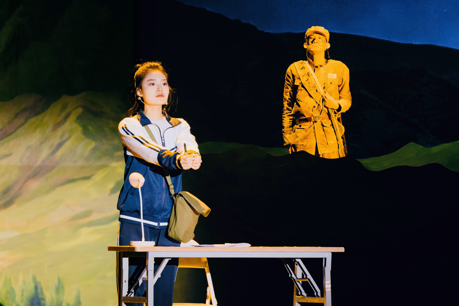 “三十年,一条路;几代人,一颗心。”大幕拉开,悠扬而深沉的旋律瞬间将观众带入了那片红色的土地。编剧别出心裁地以“一篇作文”作为全剧的序章,巧妙连接起了1995年的现实时空与1949年的战争岁月。学生莫小河笔下的文字,仿佛一把钥匙,打开了通往过去的门扉,让新时代的青少年与当年的解放军小战士纪大山在精神层面“相遇”。