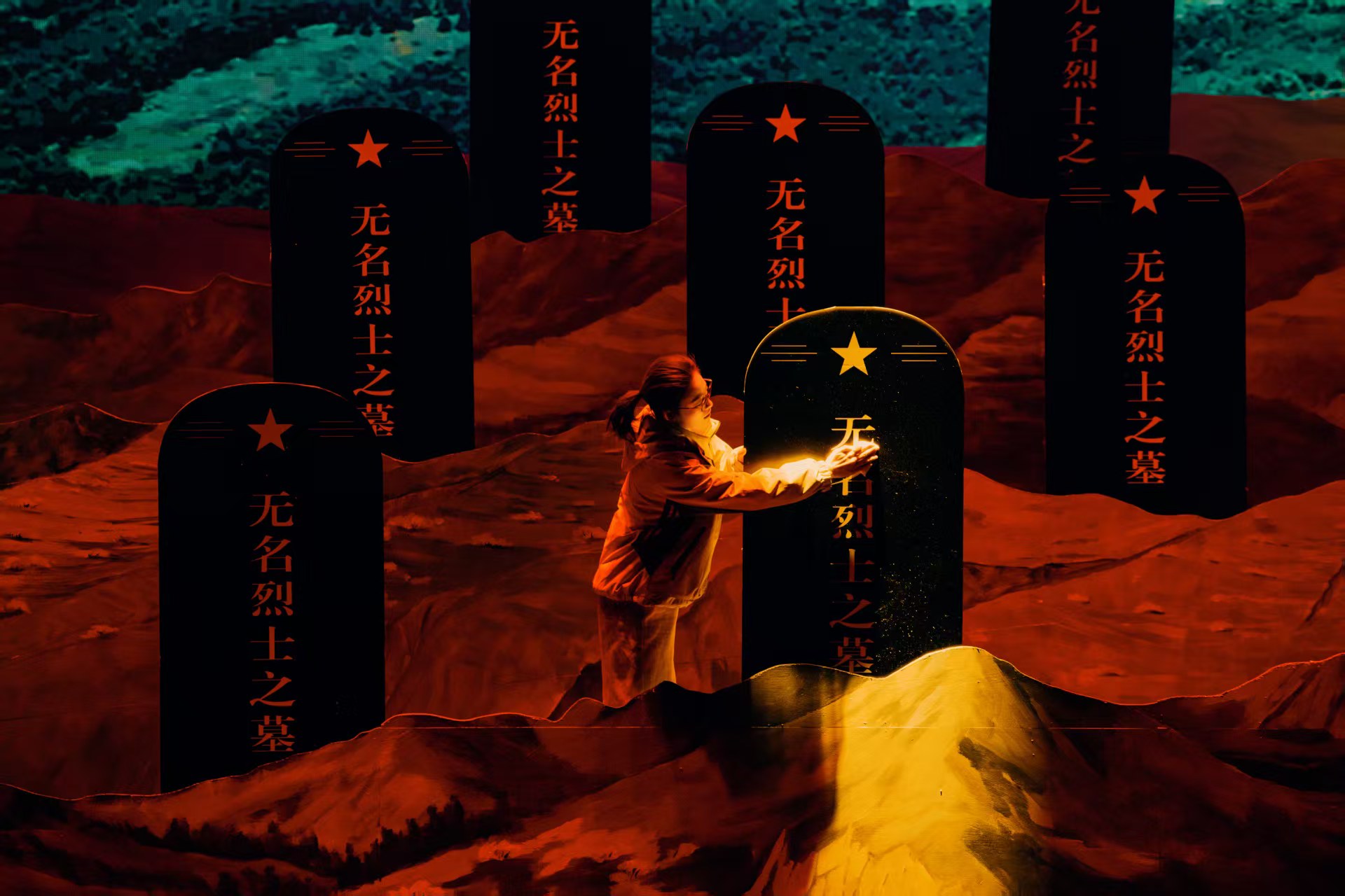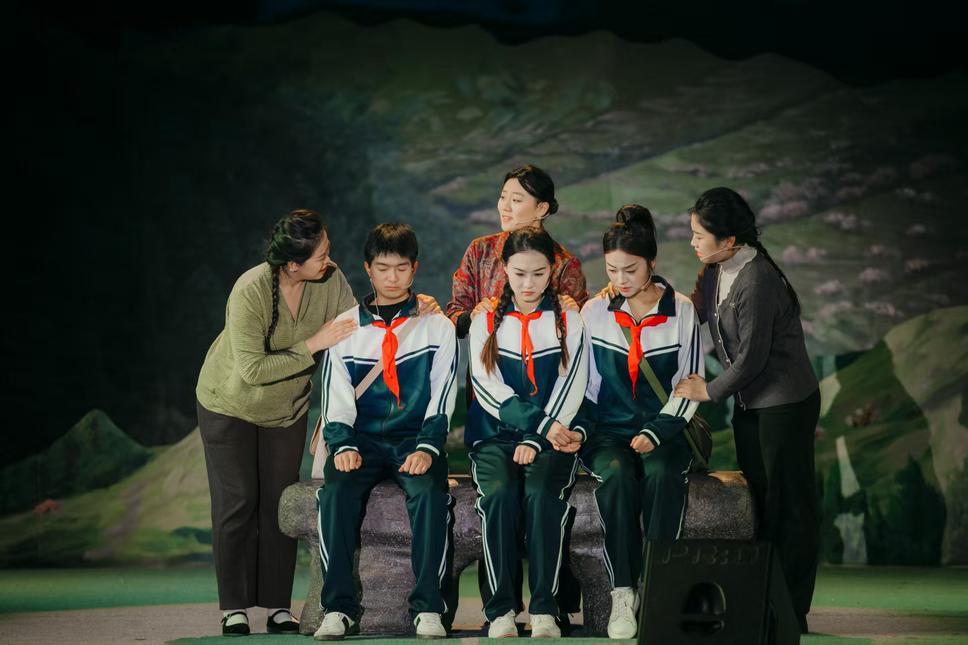 随着剧情的推进,第一幕《共赴》展现了在虚拟的历史时空中,两个不同时代的青年,在这一刻拥有了共同的目标——奔赴任山河。第二幕《生死》深深震撼了剧中试图将孩子带回的家长们,也洗礼了台下每一位观众的心灵,生与死的考验,让“徒步”不再仅仅是一次体育锻炼,而早已上升为对英烈的致敬以及对和平的珍视。第三幕《同路》将时间的指针拨转到2025年清明,当年的学生莫小河已成长为一名教师,她与老校长韩宏、现任校长并肩站立,带领新一代学子在风雨泥泞中携手前行;三代人的脚步重叠在一起,那是教育初心的坚守,也是革命精神在新时代育人实践中的生动注脚。在第四幕《山河》与尾声《永远的记忆》中,莫小河在烈士陵园的深情祭奠,与长眠地下的英灵进行了一场跨越时空的心灵对视。当不同年代的徒步亲历者走上舞台分享感悟时,剧场的气氛达到了沸点,这不仅是对红色历史的铭记,更是面向未来的宣誓:这堂“行走的思政课”将永远在路上,光荣的信仰将生生不息。正如徒步任山河活动的发起者、《山河同路》原型人物、弘文中学原校长韩宏老师所说:“我们的行动不仅让学生在百里步行的过程中感受先烈为了革命事业英勇牺牲的精神,也让他们体悟到人生的价值在于为人民服务,为共和国做出自己的贡献。”