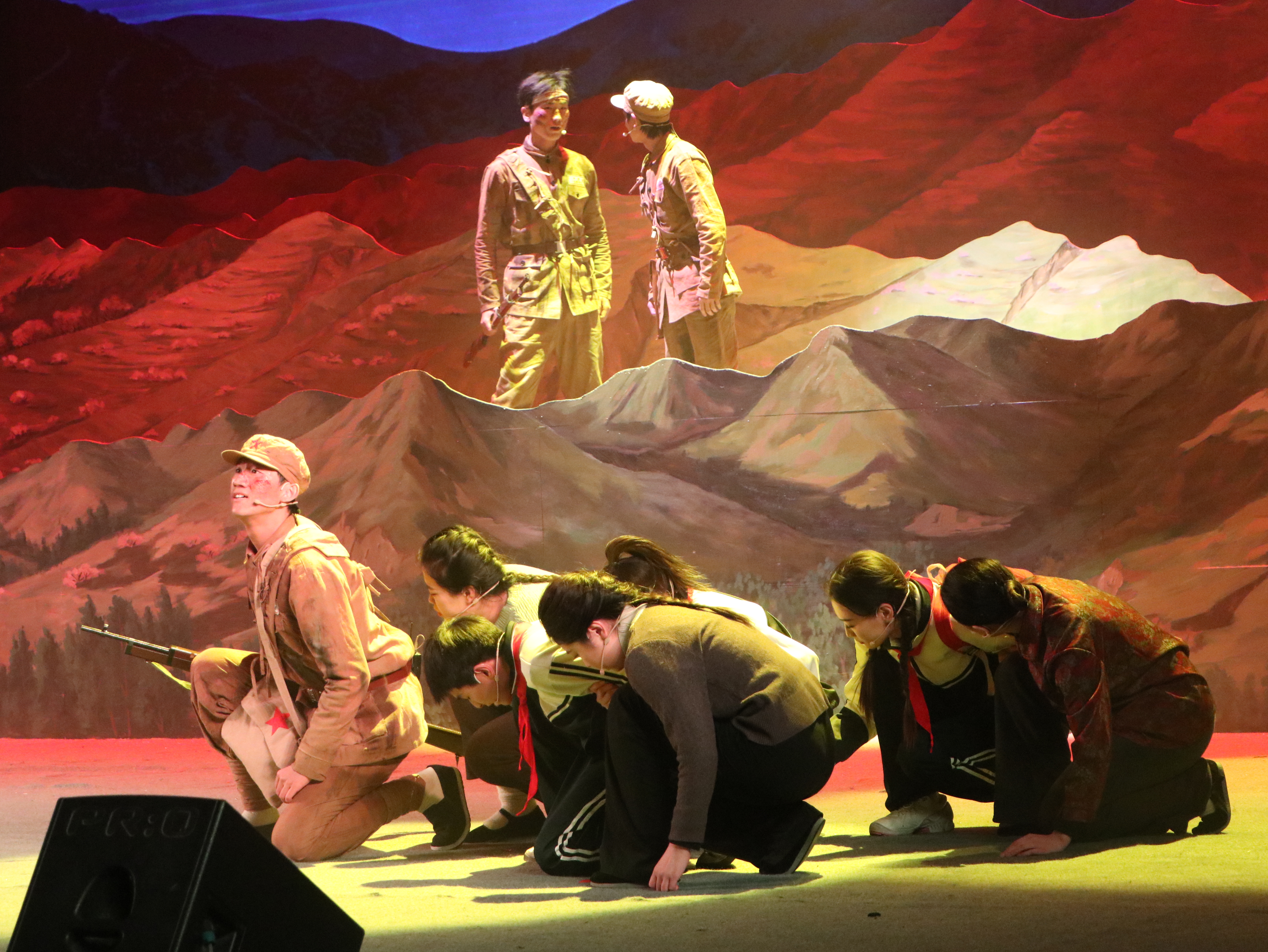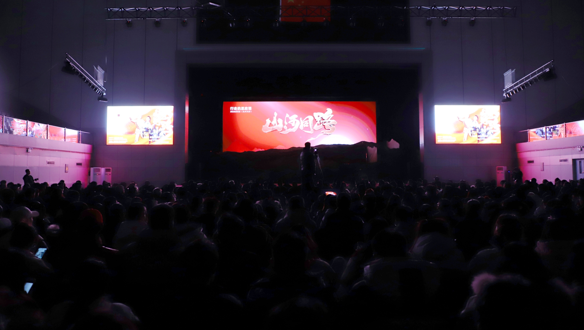【永利集团304官网新闻中心讯 冯禹君/文 王文娣、李明花、姬晓姗、张志明/图】寒冬辞旧岁,红脉启新程。12月30日晚,由永利集团304官网出品的行走的思政课——原创歌剧《山河同路》在文萃校区大学生活动中心震撼上演。该剧以固原市弘文中学(原固原二中初中部)师生连续三十年徒步108里祭扫英烈的感人事迹为蓝本,将“行走的思政课”从黄茆山路搬上艺术舞台,为师生呈现了一堂跨越时空、触及灵魂的思政大课。自治区党委宣传部、教育工委、文化和旅游厅相关领导和学校中层以上干部及师生代表3000余人共同观看演出。