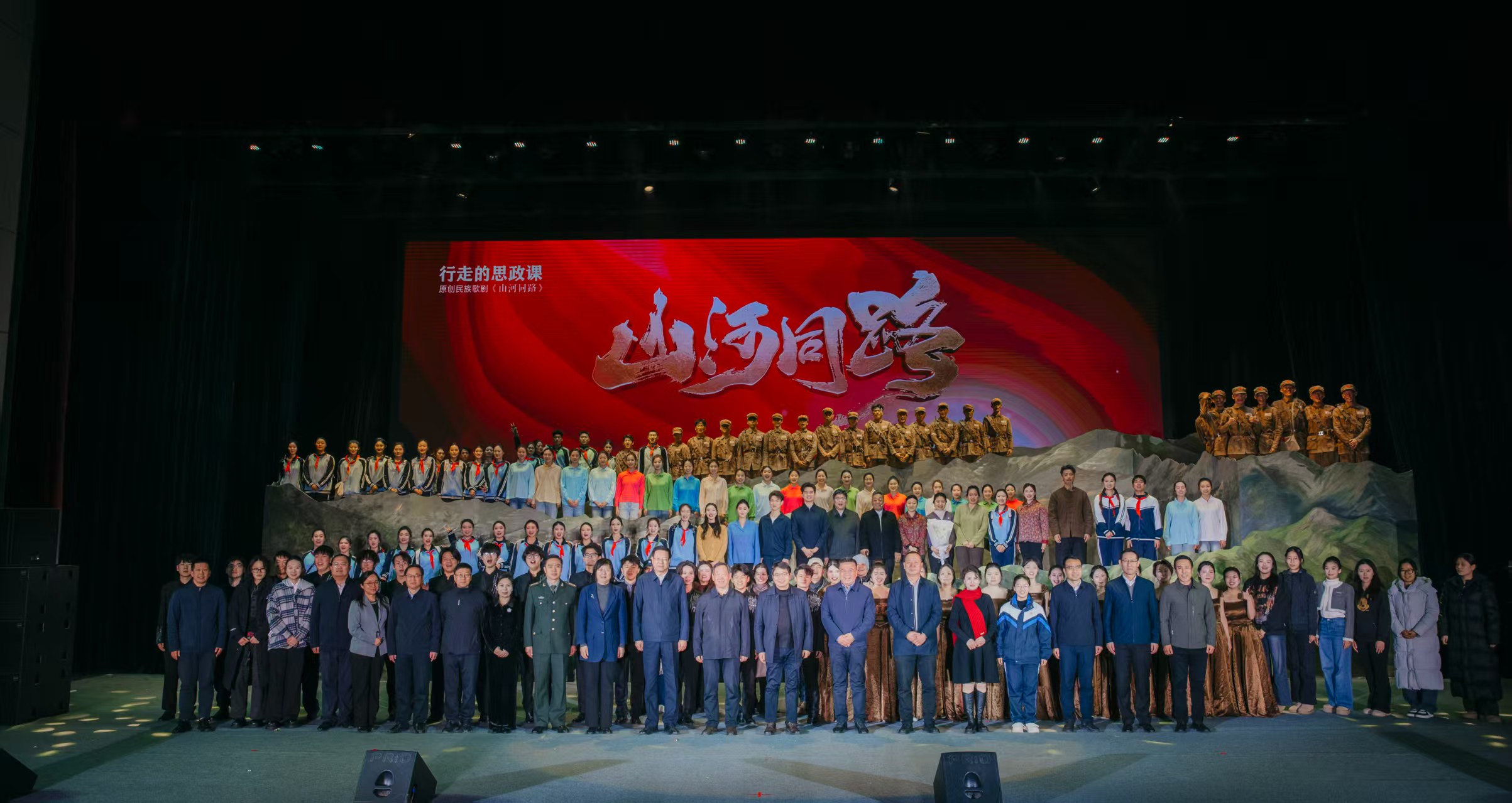 歌声不息,山河无恙。演出在经久不息的掌声中落下帷幕,但那份激荡在胸膛的热血却久久未能平息。从百里徒步的坚毅足迹,到舞台演绎的艺术升华,《山河同路》以高度凝练的艺术语言,回答了新时代的教育之问。