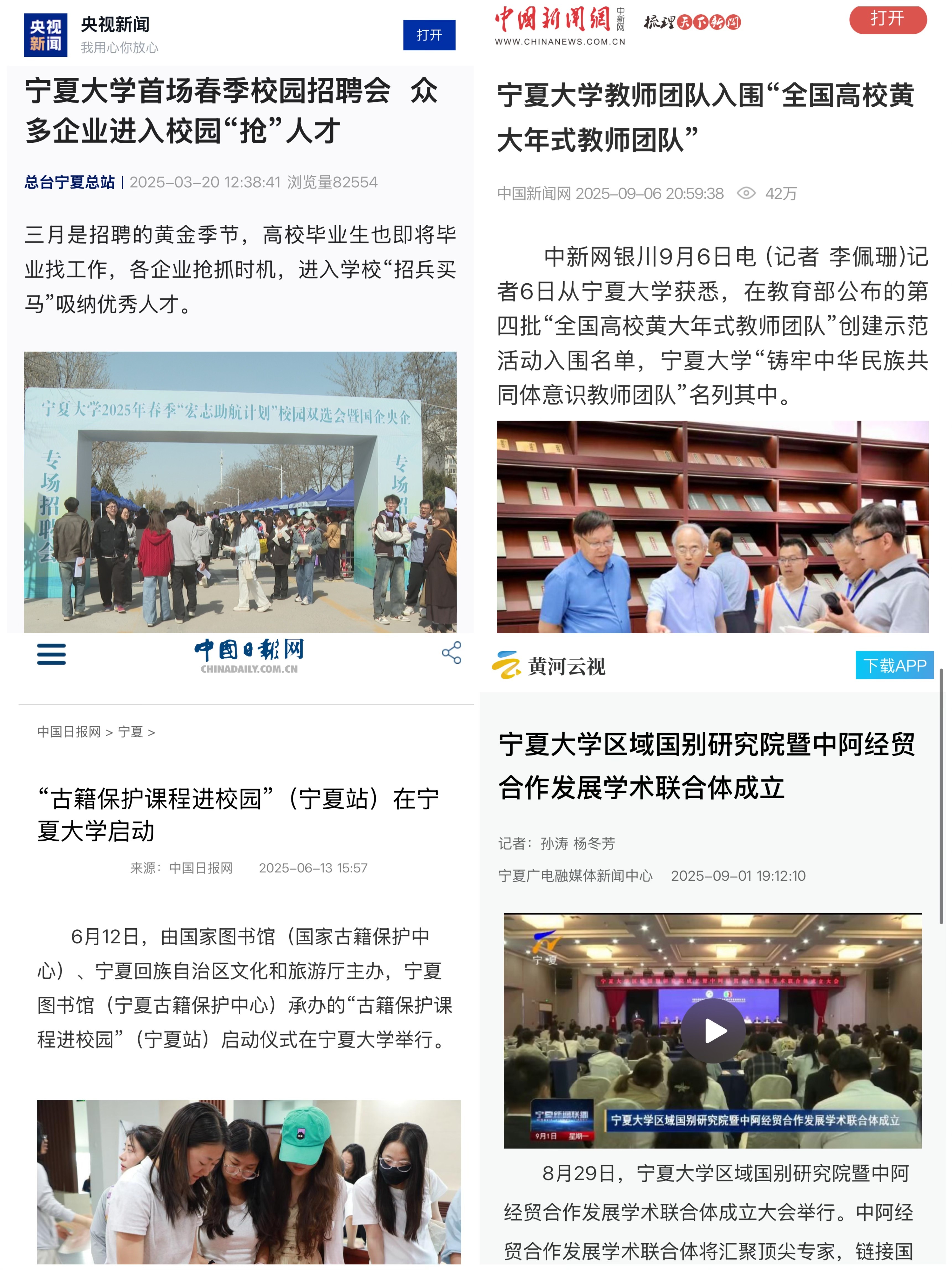 高标准提升“双一流”学科建设水平、高起点推进中卫校区建设发展、高规格建设教育部宁夏高等研究院、高水平布局学科和学位点建设、高站位推进全国重点马克思主义学院培育单位建设、高质效推进新华学院转设。面向国家战略和区域发展,不断创新人才培养供需适配改革,新增智能科学与技术、智慧水利2个本科专业,立项建设“智慧农业”“机器人工程”等10个微专业,《中国智慧与中国方案》等9门课程入选第三批国家级一流本科课程,14个师范专业全部通过师范类专业第二级认证,地理信息、现代煤化工、智能制造、云计算大数据等4所现代产业学院入选本科高校第三批自治区级现代产业学院建设名单。中国国际大学生创新大赛(2025)总决赛中斩获1金4银5铜,就业工作获评全区就业工作考核优秀等次。民族学、教育学、生物学、机械工程等20个学科上榜2025软科中国最好学科排名,实现学科建设质量与规模同步提升。