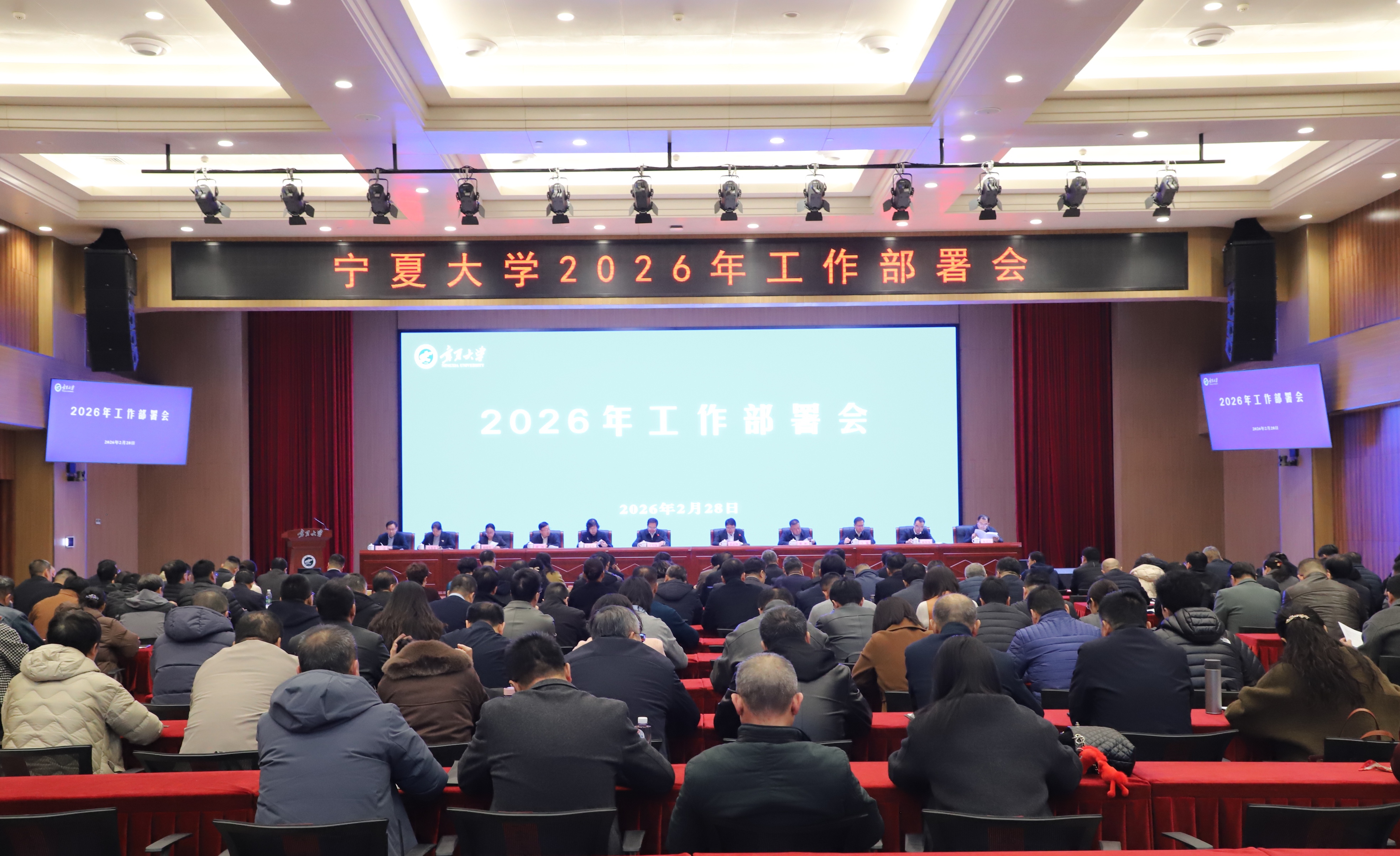 【永利集团304官网新闻中心讯 冯禹君/文 姬晓姗/图】2月28日,学校召开2026年工作部署会,总结过去一年的成绩和经验,分析当前的新形势、新任务、新挑战,安排部署今年的重点工作,统一思想、凝聚力量、明确方向、真抓实干,确保学校“十五五”发展顺利开局、良好起势。校党委书记王宏伟主持会议。