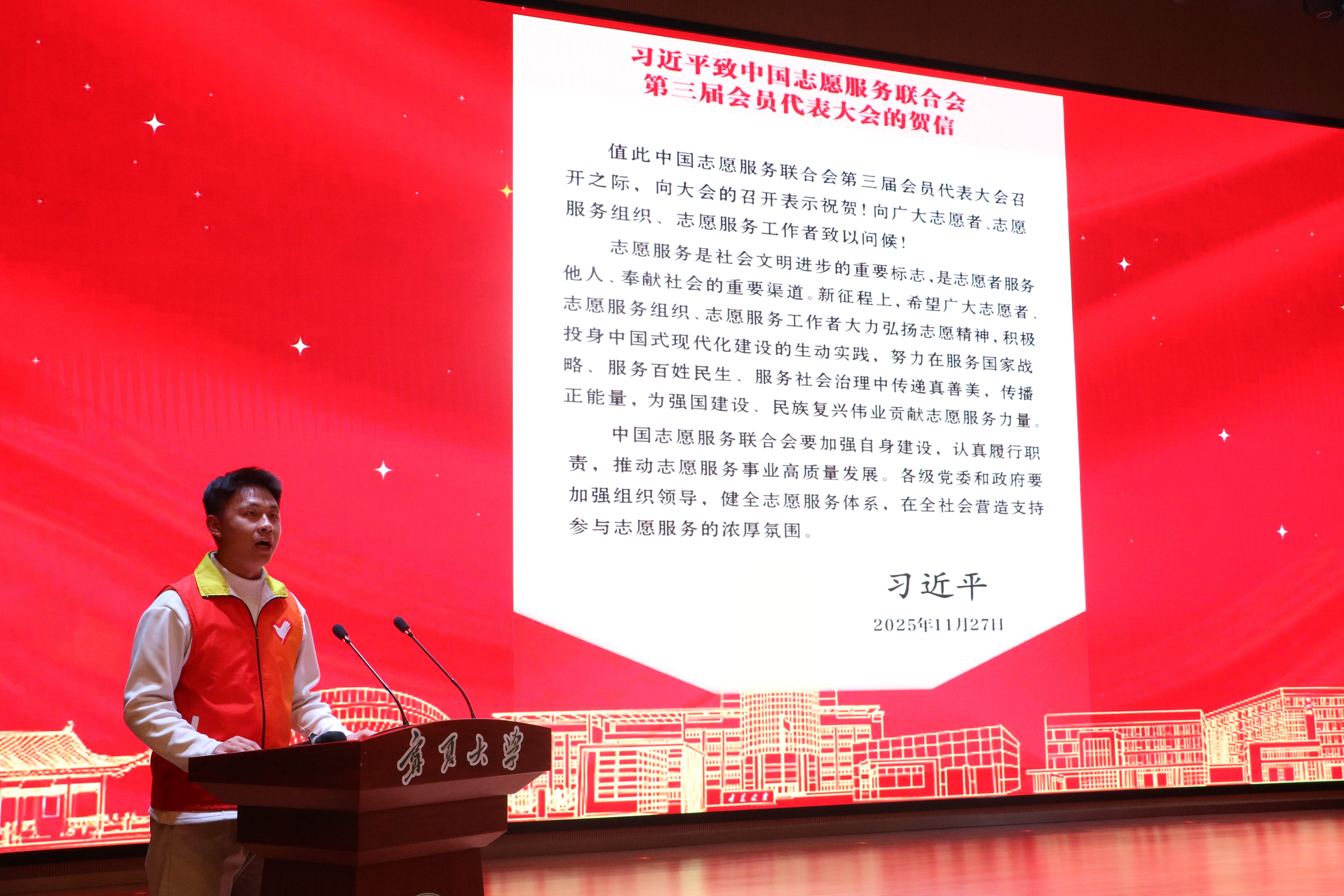 黄河表示,在“十五五”规划开局起步的关键节点,弘扬雷锋精神是践行社会主义核心价值观的实践,更是高校立德树人的必然要求。回望学校志愿服务的坚实足迹,一代代永利学子以“沙枣树精神”践行雷锋精神,在志愿服务中交出亮眼答卷,让学雷锋成为融入国家发展、融入民族复兴的生动体现。他指出,青年志愿者要坚守初心,自觉用习近平新时代中国特色社会主义思想武装头脑,将学雷锋与校风学风建设深度融合,让志愿精神成为永利青年的共同追求,让听党话、跟党走成为青春最鲜明的底色。他希望青年志愿者要深耕实践,立足学校学科专业特色,紧扣“十五五”时期国家重大战略和宁夏发展需求,推动志愿服务与乡村振兴、生态保护、社会治理等深度对接,做到学以致用、知行合一。他号召青年志愿者要挺膺担当,把学雷锋活动融入日常、化作经常,将“沙枣树精神”与雷锋精神深度融合,在服务宁夏经济社会发展、助力西部大开发新格局中展现永利青年的硬核担当。