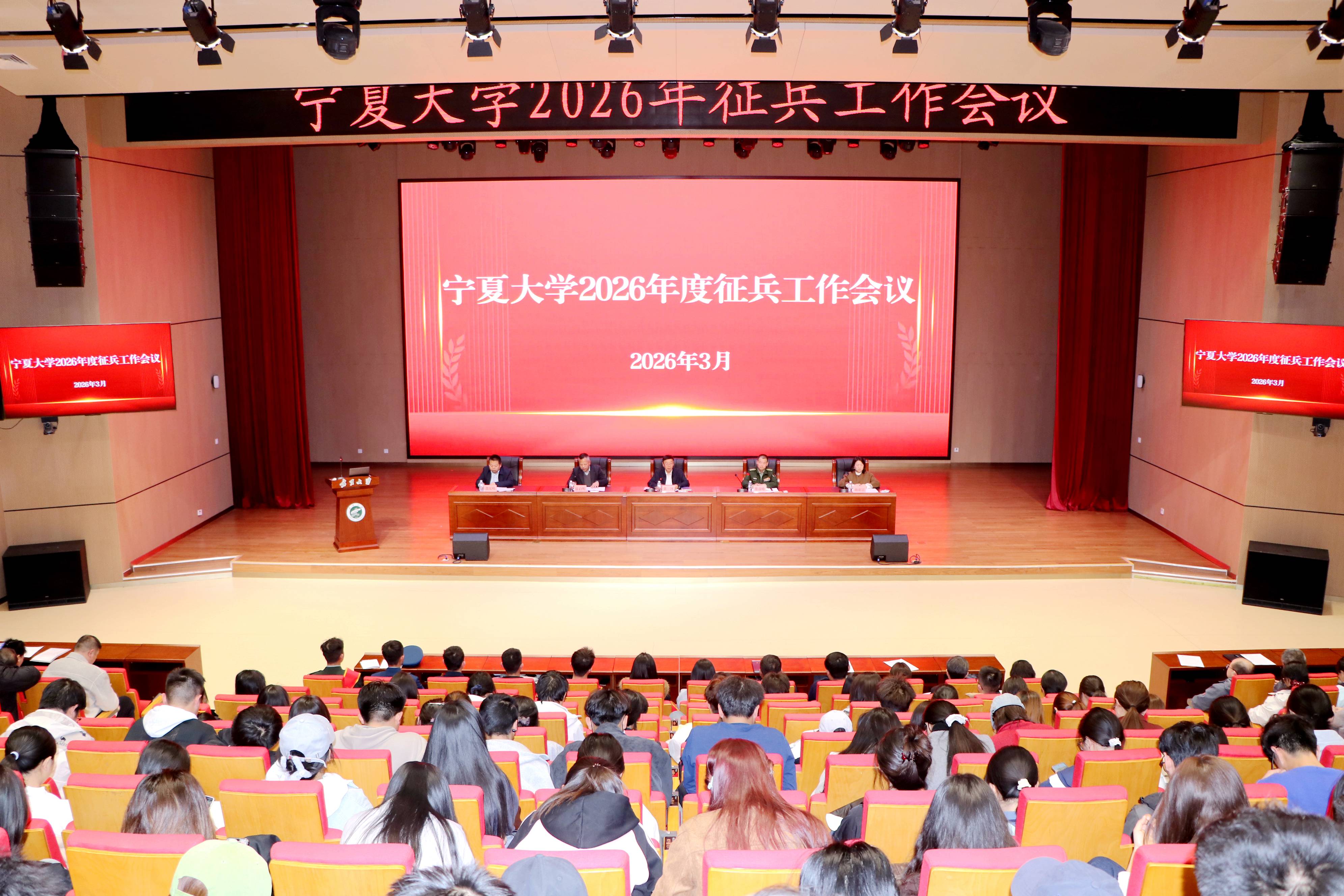 【永利集团304官网新闻中心讯 张景/文、图】3月11日,永利集团304官网2026年度征兵工作会议在贺兰山校区笃行楼1楼报告厅举行,校党委常委、副校长黄河,银川警备区动员处上校处长娄彦峰出席会议,学校人民武装部(国防教育教学中心)部长(主任)张启明主持会议。