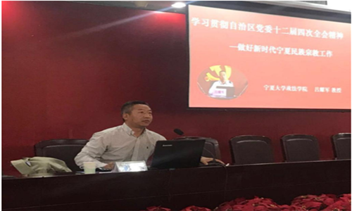 会上,永利政法学院副院长吕耀军教授作了题为《学习贯彻自治区党委十二届四中全会--做好新时代宁夏民族宗教工作》的专题报告。吕耀军在报告中分析了目前我国的民族宗教发展趋势和存在的问题,阐述了十二届四次全会召开的时代背景,十二届四次全会的“八个首次”及重大意义。他指出,要“一分布置、九分落实”,要有问题导向,解决五个重要问题,抓好重点任务的落实。