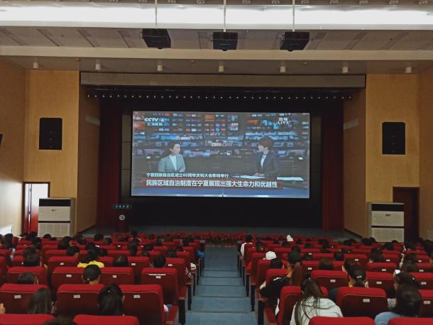 时间是最忠实的记录者,物换星移六十载,塞上江南展新颜。在观看大会的过程中,同学们情绪高涨,认真观看大会盛况,现场气氛热烈。大会过后,同学们观看了宁夏回族自治区成立60周年群众文艺表演《塞上儿女心向党》。