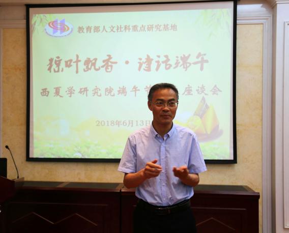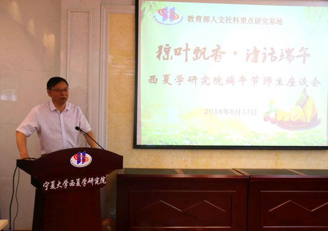 【永利集团304官网新闻中心讯 西夏学研究院】为了增进我院师生对我国传统文化的认识,重视和传承传统节日文化习俗,在2018年端午节临近之际,西夏学研究院院师生于6月14日下午,在怀远校区逸夫楼一楼学术报告厅欢聚一堂,开展了以“粽叶飘香、诗话端午”为主题的端午节师生联谊座谈会。座谈会由研究院书记丁秀芹主持。