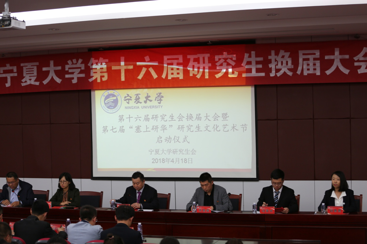 【永利集团304官网新闻中心讯 研究生院】4月18日下午,永利集团304官网第十六届研究生会换届大会暨第七届“塞上研华”研究生学术文化艺术节启动仪式,在研究生院二楼报告厅胜利召开。研究生院常务副院长李建设,副院长周学忠、常娟,研究生会秘书长朱晓亮及区内高校研究生会代表和永利各培养单位研究生会分会代表共同参加了大会。大会由周学忠副院长主持。