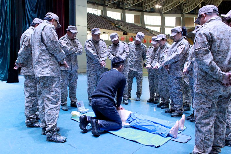 随后,针对场馆中心人员密集的特点,假设在遇有重大意外伤害时,如何保障师生安全,如何进行心肺复苏等急救方法重点开展了应急急救知识讲座与演练。通过每个人的实践操作,使教职工对紧急救护有了更深刻的认识与体会,使大家掌握了基本的急救知识和基本要领,提高了教职工面对意外事故的处理能力。