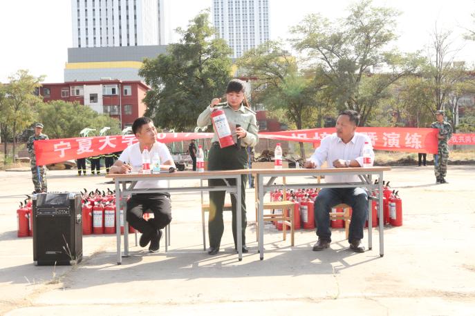 演练开始前,保卫处邀请西夏区消防大队怀远中队马媛媛干事结合季节变化和日常生活中的防火重点、灭火器的使用方法给广大师生进行讲解;保卫处副处长张启明、消防科科长李尚平、干事张树全分别就宿舍违规使用大功率电器带来的危害、密集场所发生火灾人员疏散方法和消防水阀的使用、发生火灾后如何逃生等进行了详细讲解。