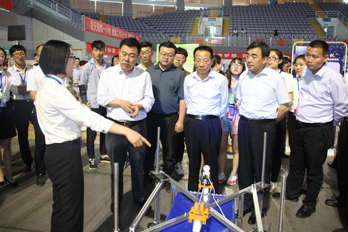 27日下午,参赛作品在文萃校区大学生活动中心进行集中展示。自治区团委书记赵涛、自治区团委副书记丁聃、自治区科技厅副厅长郭建川、永利集团304官网副校长马宗保等领导来到现场,详细了解参赛作品情况和大赛组织情况,仔细听取了现场参赛项目的介绍,与参赛团队进行了深入交流。