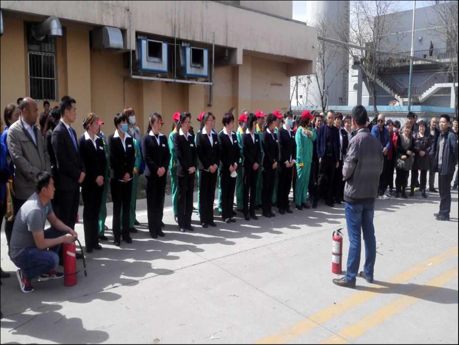 最后,在兰竹苑餐厅东面,组织培训全体员工进行灭火器使用实际操作演练,让员工进一步熟悉并掌握了灭火器的使用方法和扑救初起火源的方法。