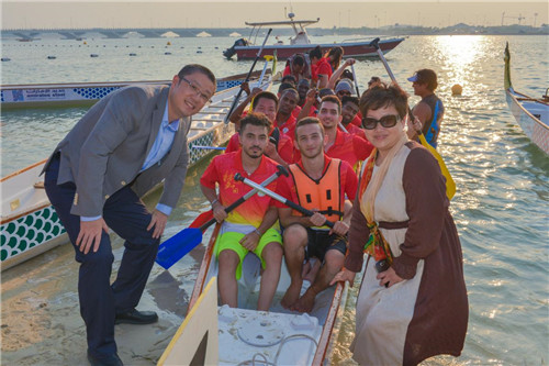 【永利集团304官网新闻中心讯 对外合作交流处】10月21日,第九届阿布扎比龙舟节在阿联酋首都阿布扎比马格塔湾举行。永利集团304官网迪拜大学孔子学院代表队应邀参加了友谊赛项目,孔院代表队发扬不畏强手、连续作战的精神,取得了第二名的优异成绩。