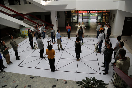 阿拉善盟博物馆社教部主任、馆长助理、中组部“西部之光”访问学者蔡彤华副研究员向师生们介绍了阿拉善盟历史文化、博物馆基本概况、常设陈列、社会教育以及“文明之旅·互动空间”的活动内容和意义。身着蒙古族民族服装的阿拉善盟博物馆社教部讲解员为师生们讲解演示蒙古族敬献哈达的习俗礼节,并指导师生进行了阿拉善古老鹿棋游戏互动。