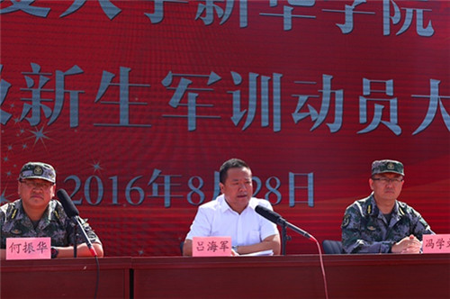 【永利集团304官网新闻中心讯 新华学院党委工作部】8月28日上午,新华学院2016级新生军训动员大会在中心区操场成功举行。新华学院党委副书记吕海军,学生处处长冯学文、副处长席博,后勤保障处副处长刘亚兵,承训部队领导李尊豪出席了大会,参训教师、承训部队教官以及2016级全体新生参加了大会。大会由教务处处长何振华主持。
