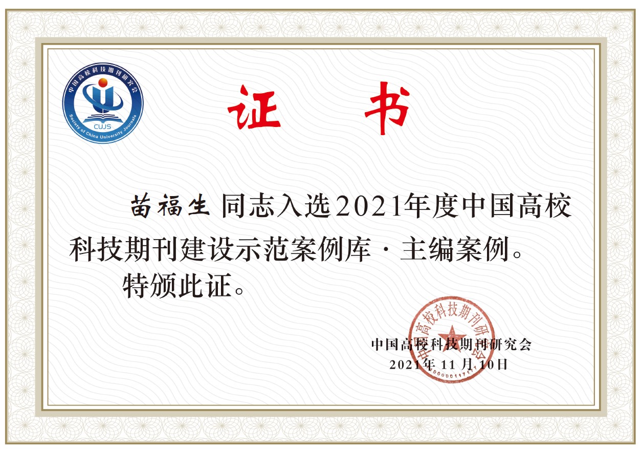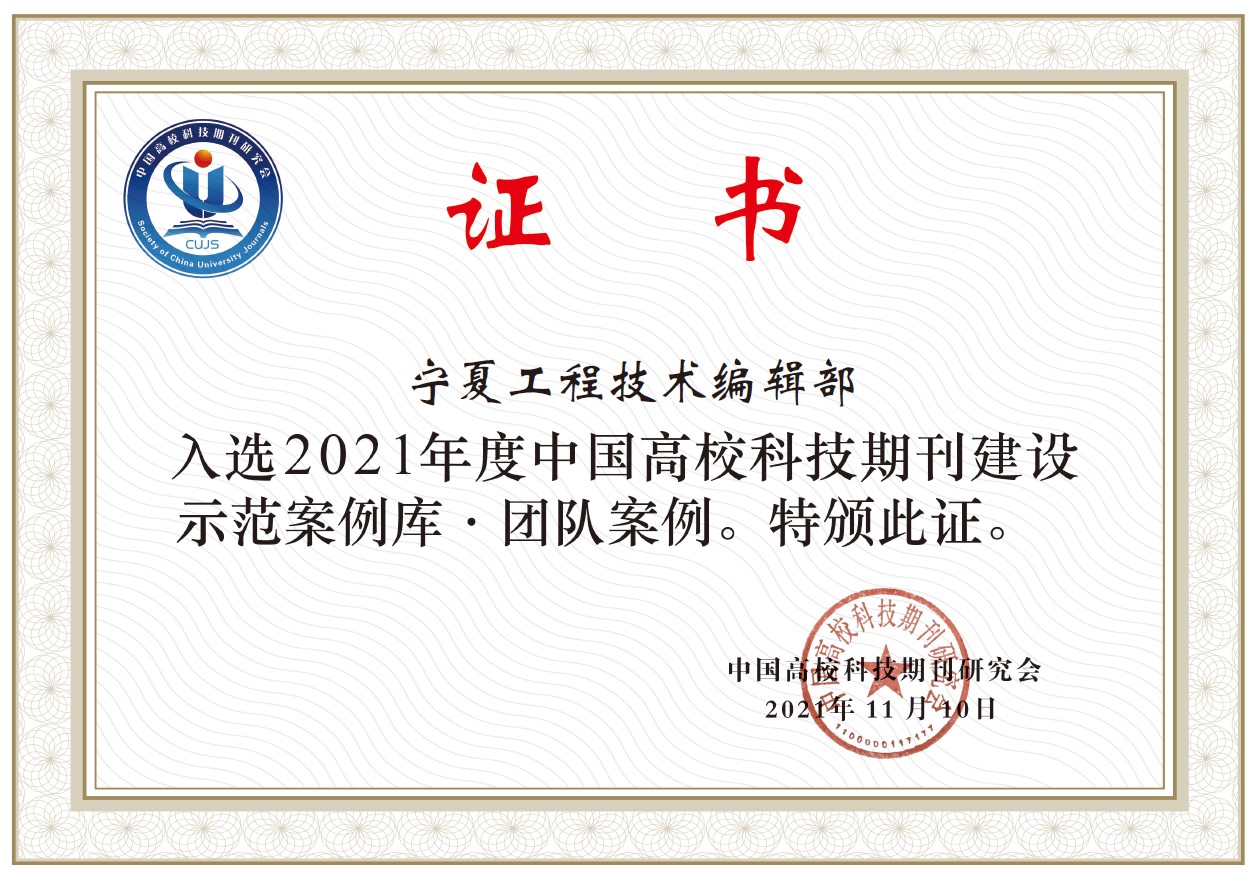 永利主办的《永利集团304官网学报(自然科学版)》和《宁夏工程技术》入选2021年度中国高校科技期刊建设示范案例库•团队案例。苗福生入选2021年度中国高校科技期刊建设示范案例库•主编案例。