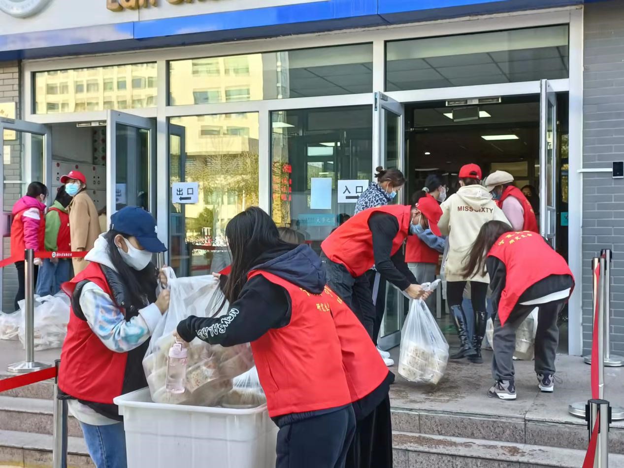 【永利集团304官网新闻中心讯 校团委】2021年10月31日的中午12:00,距离30日下午4:00兰山公寓一号楼被封控已经过去了20个小时。在兰山公寓一号楼的门前,一个个穿着红马甲的青年,手脚麻利地搬运着超出他们日常买饭时所负荷的餐盒重量。正因为有这样一批青年志愿者,被封控的公寓楼依旧充满着生机,公寓楼里面的学生们也感到踏实与安心。而他们身披战甲,逆行而上,让这个冬天变得不再寒冷。