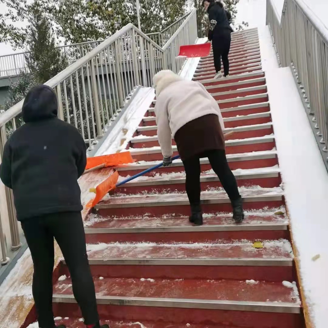 早上7点半,后勤保障部校园物业中心将所有值班职工统一调配,集中对校区主干道积雪和家属区进行清扫,确保师生出行安全。8点前,公寓值班人员已将学生公寓门前道路全部清理出来,方便学生出行,并在公寓台阶等易滑地点铺设地毯。饮食服务中心积极做好饭菜保温工作,及时将餐厅周边的积雪清扫干净,为师生打扫出一条平安用餐路。水电暖服务中心坚持24小时值班,确保雪天水、电、暖的正常供应。
