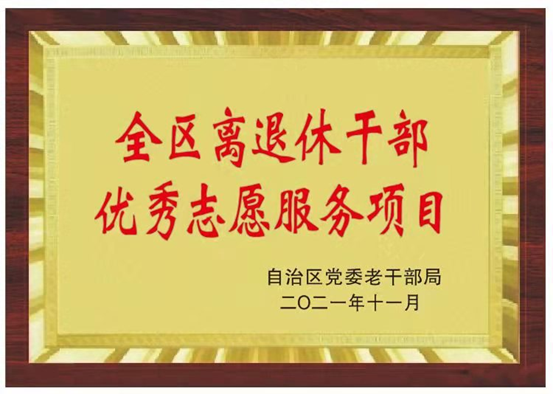 【永利集团304官网新闻中心讯 离退休人员服务处】为深入学习贯彻习近平总书记对志愿服务的重要指示精神,认真贯彻落实中央及自治区关于志愿服务工作的部署, 进一步挖掘、培育、宣传优秀离退休干部志愿服务项目,不断扩大“银耀宁夏”志愿服务工作品牌影响力,引导广大离退休干部继续为全区经济社会发展献智出力。12月2日,经自治区老干部局专家评选,永利集团304官网五老报告团志愿者服务项目在全区五市及区直部门优秀志愿者服务项目大赛评选中荣获“全区离退休干部优秀志愿服务项目”。