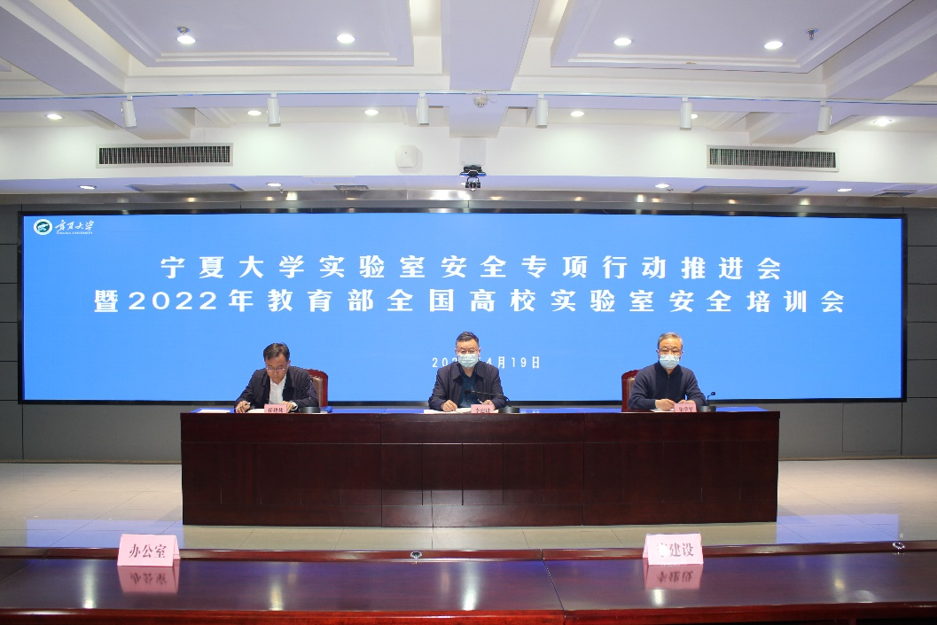 【永利集团304官网新闻中心讯 资产与实验室管理处】为落实教育部、自治区教育厅关于高校实验室安全工作相关内容,推动实验室安全专项行动走深走实,4月19日,校党委常委、副校长李建设在德勤楼六楼会议室主持召开永利集团304官网实验室安全专项行动推进会,并参加2022年教育部全国高校实验室安全培训会。