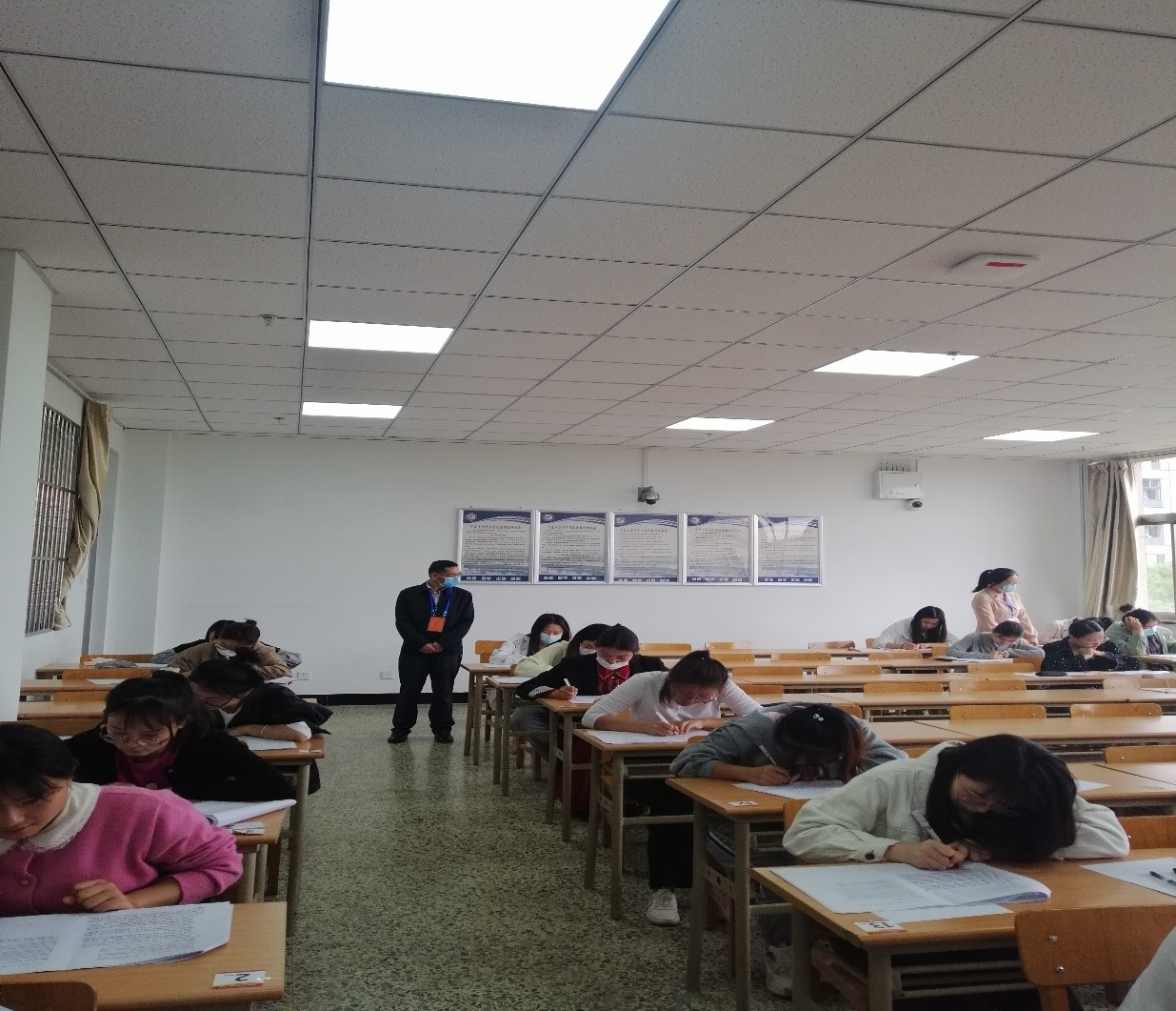 据悉,此次是永利首次举办教育类研究生和部分师范生教师职业能力测试笔试工作,教学运行保障部制定了完备的线上线下考试方案,线上测试采用双设备,分别用于答题和腾讯会议监控,并在考前组织模拟测试,确保线上、线下各考试环节同步进行、保障线上监考与线下监考实质等效。