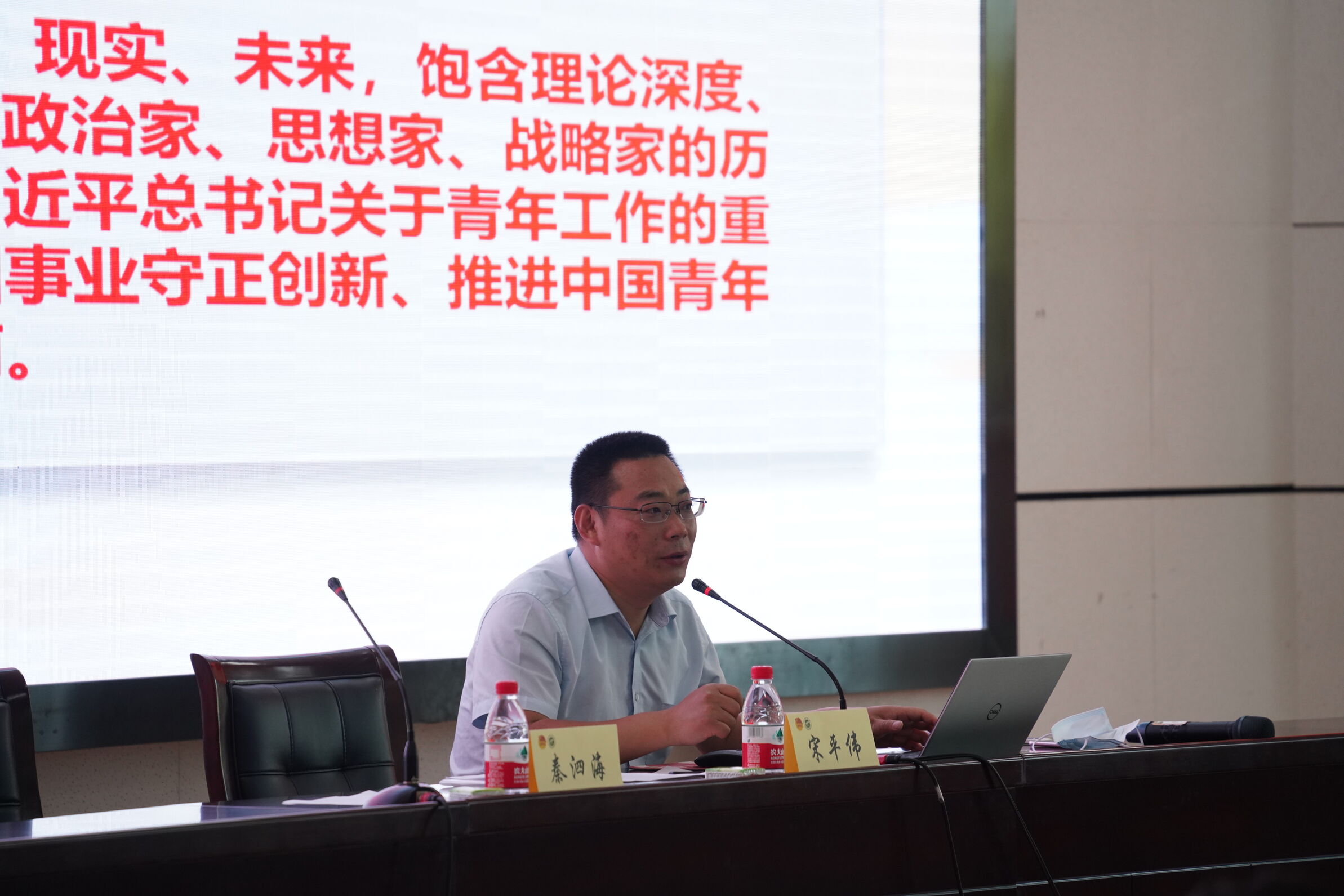示范宣讲特邀中共宁夏区委党校宁夏行政学院骨干教师宋平伟老师主讲,宋平伟围绕中国青年运动的发端和共青团的诞生、党领导下共青团的光辉历程和重要功勋、共青团百年征程形成的宝贵经验、新时代青年工作和共青团工作的正确方法等四个方面进行了宣讲。