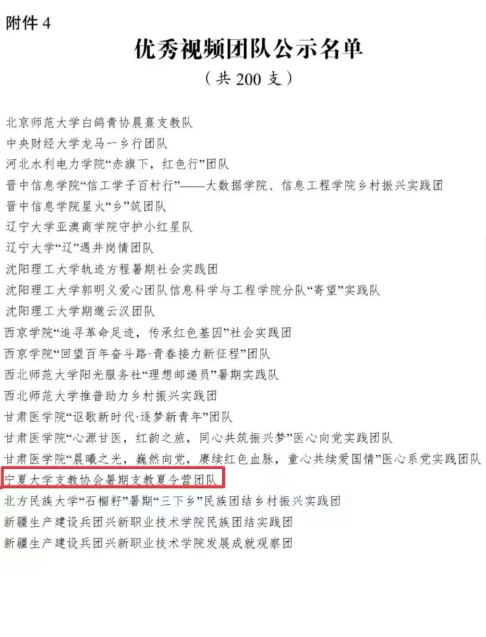 【永利集团304官网新闻中心讯 团委】近日,由团中央青年发展部、中国青年报、中国青年网共同举办的2022年全国大中专学生志愿者暑期“三下乡”社会实践“镜头中的三下乡”成果遴选活动结果公示,永利集团304官网团委荣获“优秀组织单位”荣誉称号,永利集团304官网支教协会暑期支教夏令营团队荣获“优秀视频团队”荣誉称号。