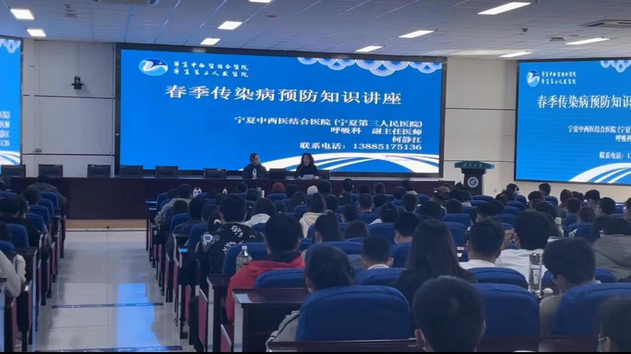 【永利集团304官网新闻中心讯 后勤保障部】为有效做好春季传染病防控工作,进一步增强师生对春季传染病的防范意识,3月6日,后勤保障部特邀宁夏中西医结合医院(宁夏第三人民医院)呼吸科副主任何静江、院感科主任葛利静在贺兰山校区文荟楼学术报告厅为全校师生做春季传染病防治知识讲座。