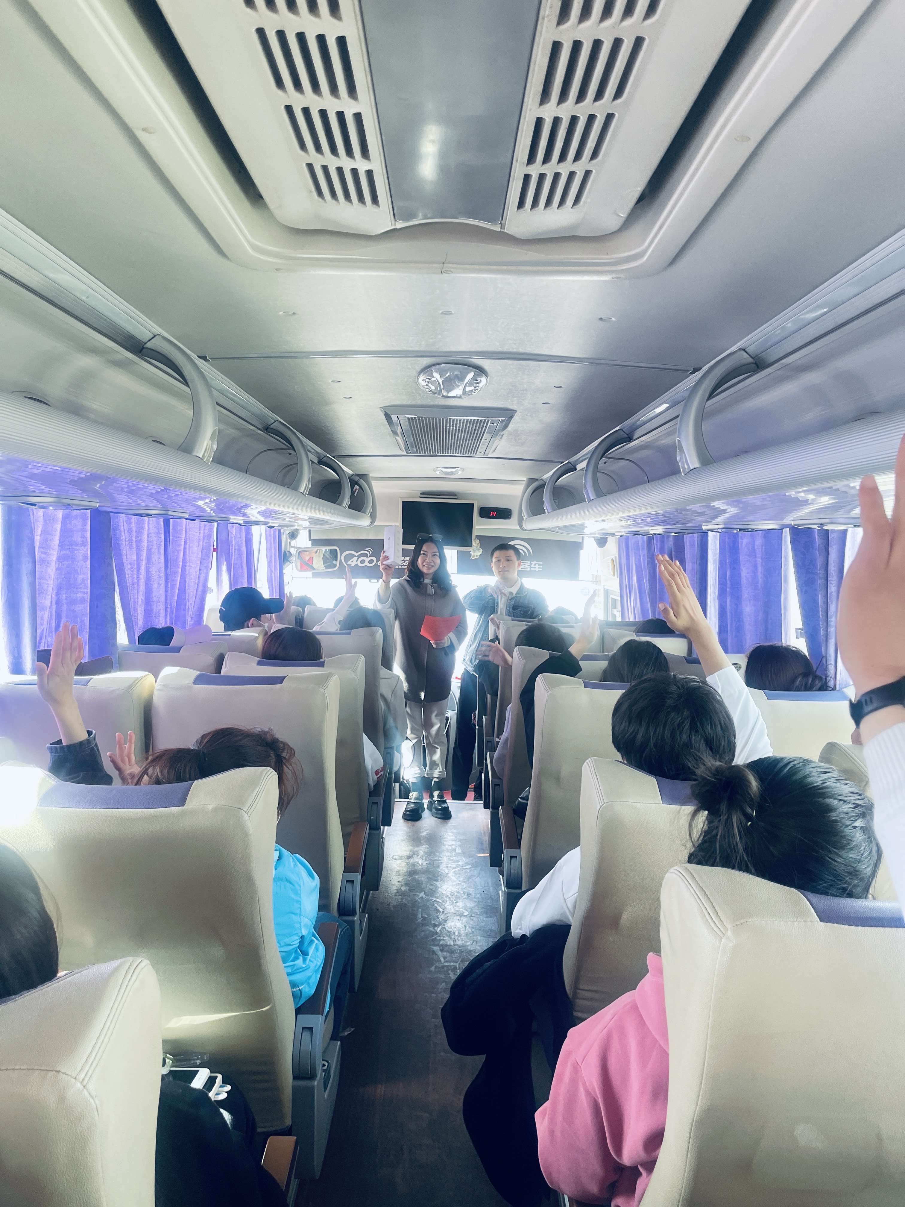 返回途中,参观师生就学习党的二十大精神进行有奖答题活动,学生们积极踊跃回答。
