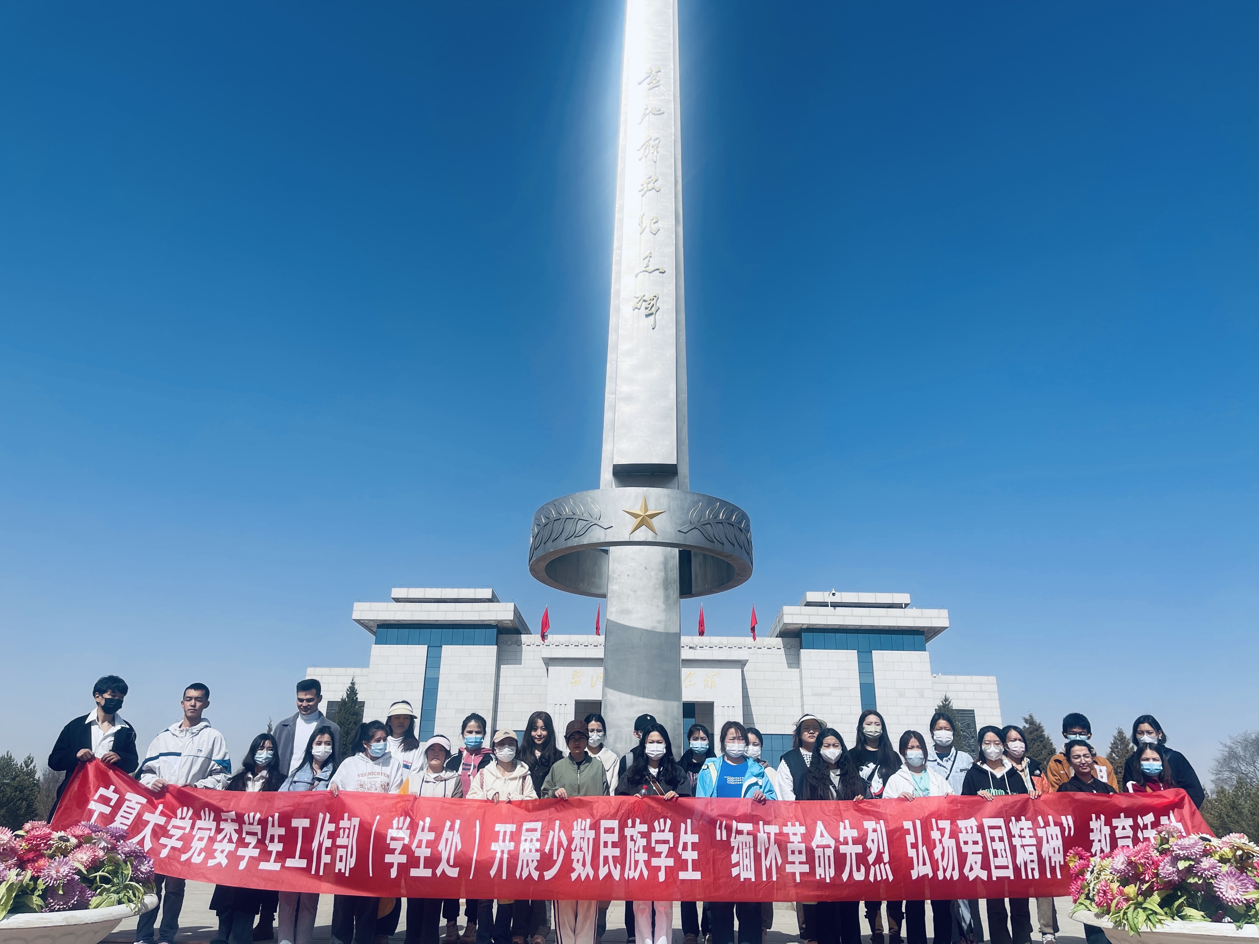 【永利集团304官网新闻中心讯 学生处】为引导少数民族大学生缅怀革命先烈,传承红色基因,更好地将爱国教育同革命精神相结合,3月25日,校党委学生工作部(学生处)组织开展了“缅怀革命先烈 弘扬爱国精神”参观盐池革命烈士纪念园活动,新疆派驻教师、少数民族专职辅导员和来自各学院的30名少数民族学生参加活动。