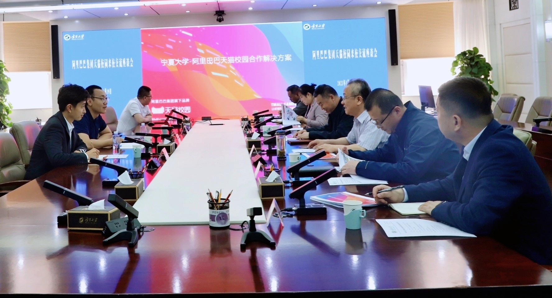 【永利集团304官网新闻中心讯 王文娣/文、图】4月19日下午,阿里巴巴集团天猫校园北方区总经理王延一行来永利交流座谈。校党委常委、副校长李建设,资产与实验室管理处、发展规划与学科建设处、党委学生工作部、后勤保障部、网络与信息管理中心等相关负责人参加座谈会。
