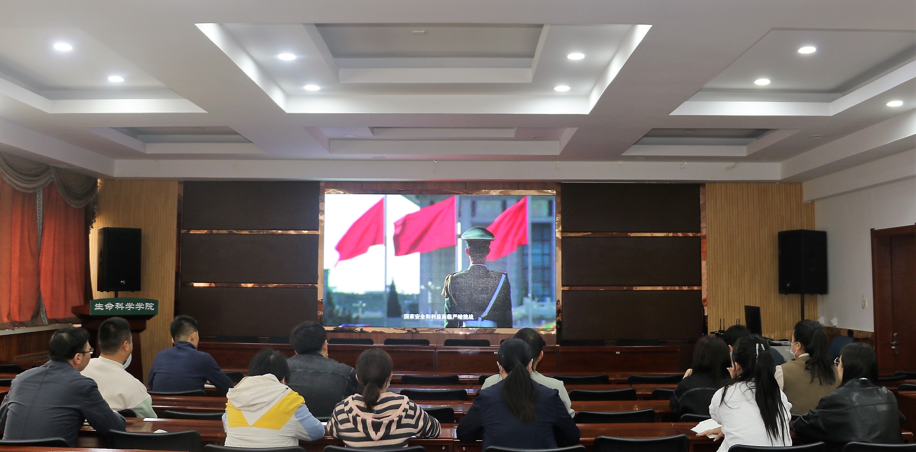 会后,学部领导及全体工作人员进行了保密宣传教育专题学习,共同观看了专题片《警钟长鸣》。