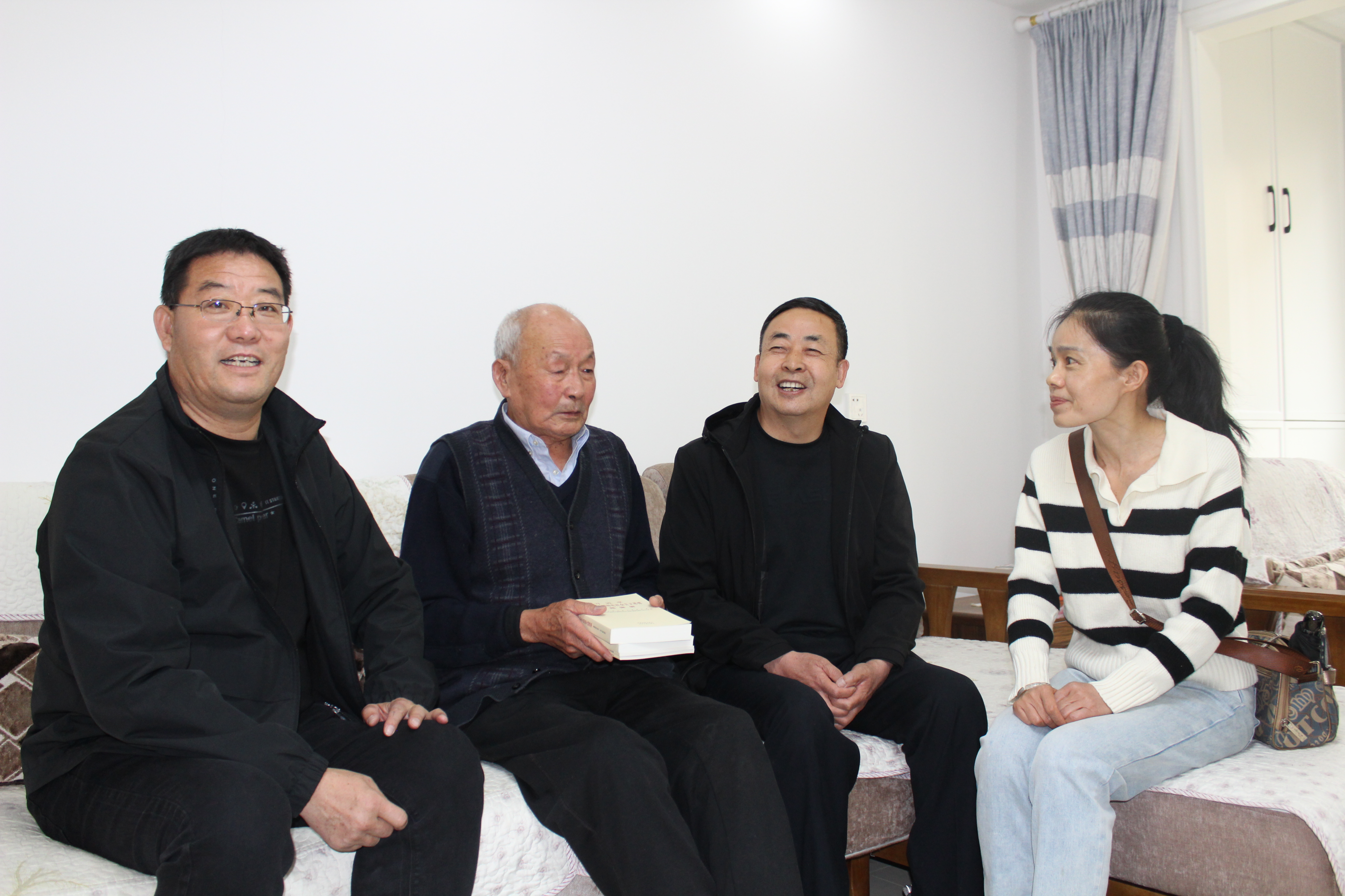 【永利集团304官网新闻中心讯 离退休人员服务处】为进一步推动学习贯彻习近平新时代中国特色社会主义思想主题教育走深走实,5月4日,离退休人员服务处班子成员和怀远校区离退休第一党支部书记孙宝德一行四人先后到年过九旬的离休老党员焦全贵、朱萱华家中,将《习近平新时代中国特色社会主义思想专题摘编》等4本学习书籍送到他们手中,并与两位老党员促膝交谈,细心地为他们讲解相关内容,积极传递习近平新时代中国特色社会主义思想的“好声音”,向他们转达党组织的关怀和问候,希望老人家保重身体,坚持学习,继续发挥党员先锋模范作用。