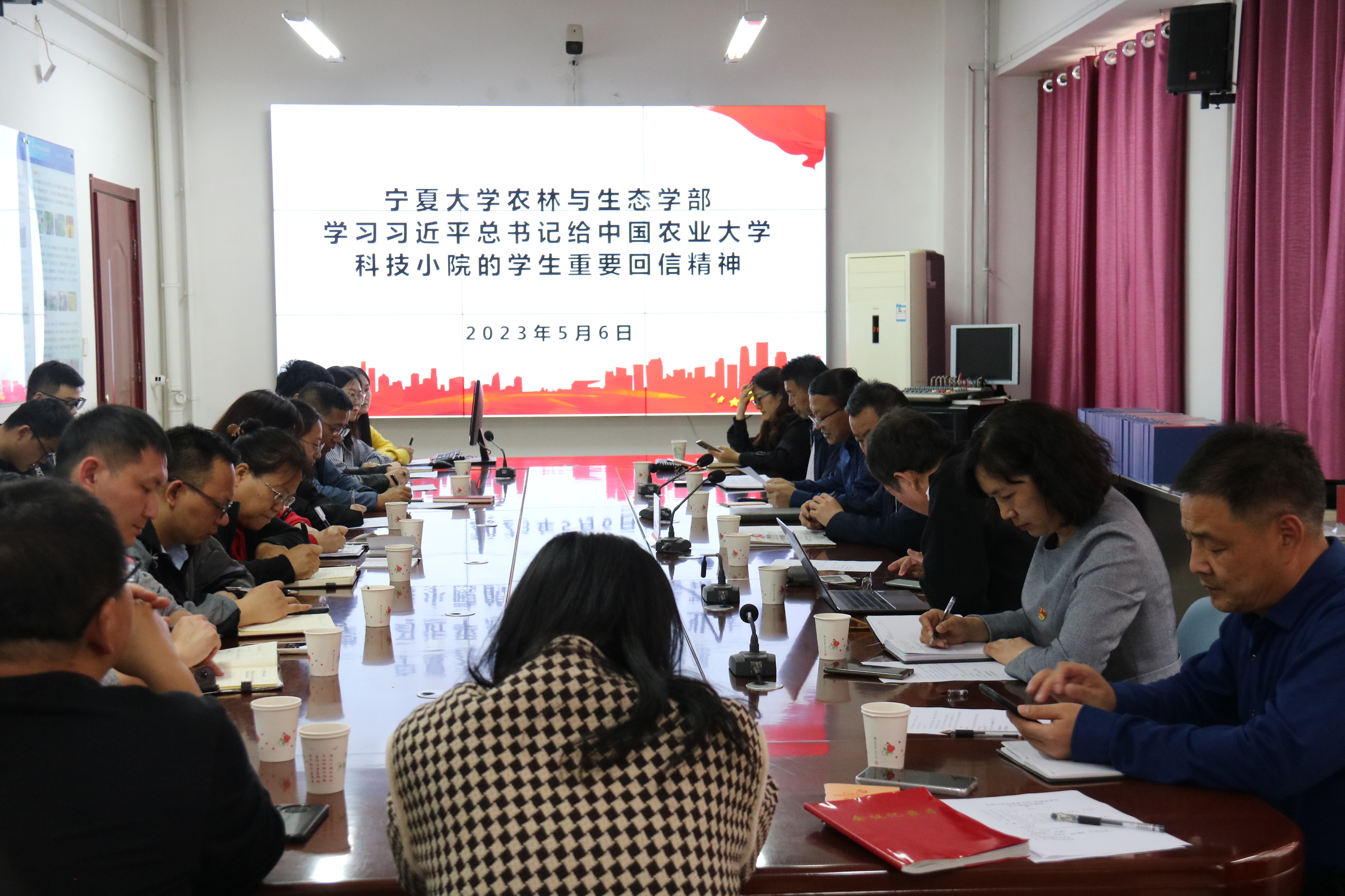 会上,马红彬领学了《习近平给中国农业大学科技小院的同学们的回信》,并结合回信内容,简要介绍了学部科技小院的建设情况,要求全体教师要牢记习近平总书记的嘱托,紧密联系宁夏农业发展实际,把课堂和实验室设在农业生产一线,让理论学习和乡村振兴紧密结合起来,在乡村振兴的大舞台上建功立业,为加快推进农业农村现代化、全面建设社会主义现代化国家贡献力量。
