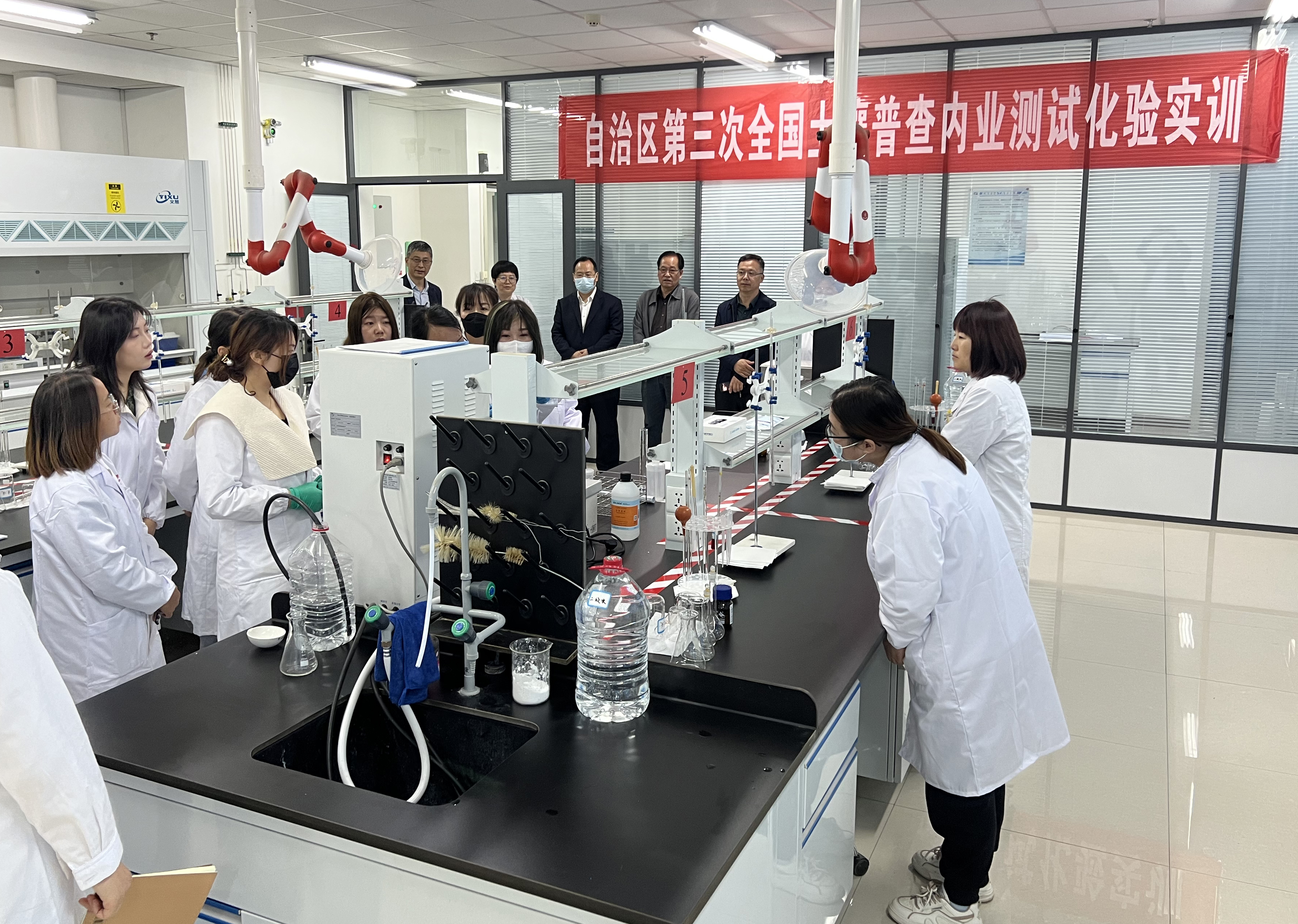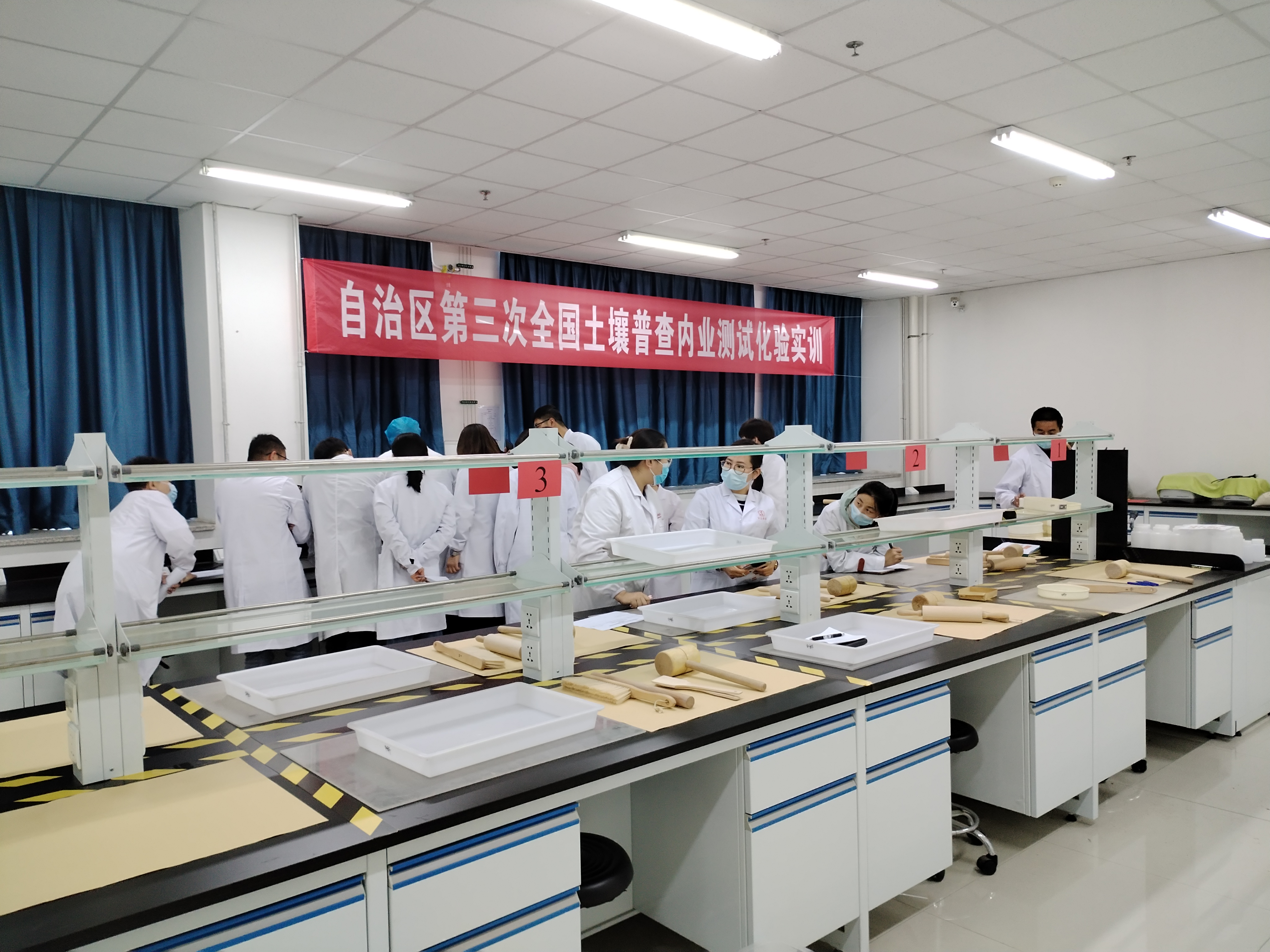 此次由自治区第三次全国土壤普查领导小组办公室主办的土壤普查技术专题培训班,测试分析中心作为全区四个“土壤普查内业测试化验省级质量控制实验室”之一,承担了培训的内业实训考核任务,共完成了“土壤样品制备”“阳离子交换量”“有效硫”三个项目50余人次的实训考核。为承办好此次实训考核任务,在自治区土壤普查办指导下,测试分析中心成立了工作专班,就培训场地、实验仪器、试剂耗材等进行了全面细致充分的准备。