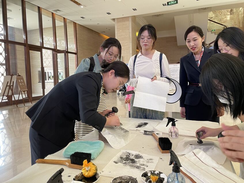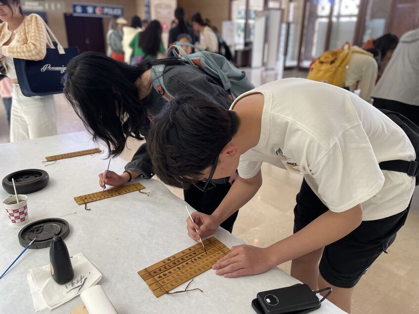 参观结束后,学生讲解员们一同参与了岩画拓片、杯垫制作、居延汉简描摹等实践活动。