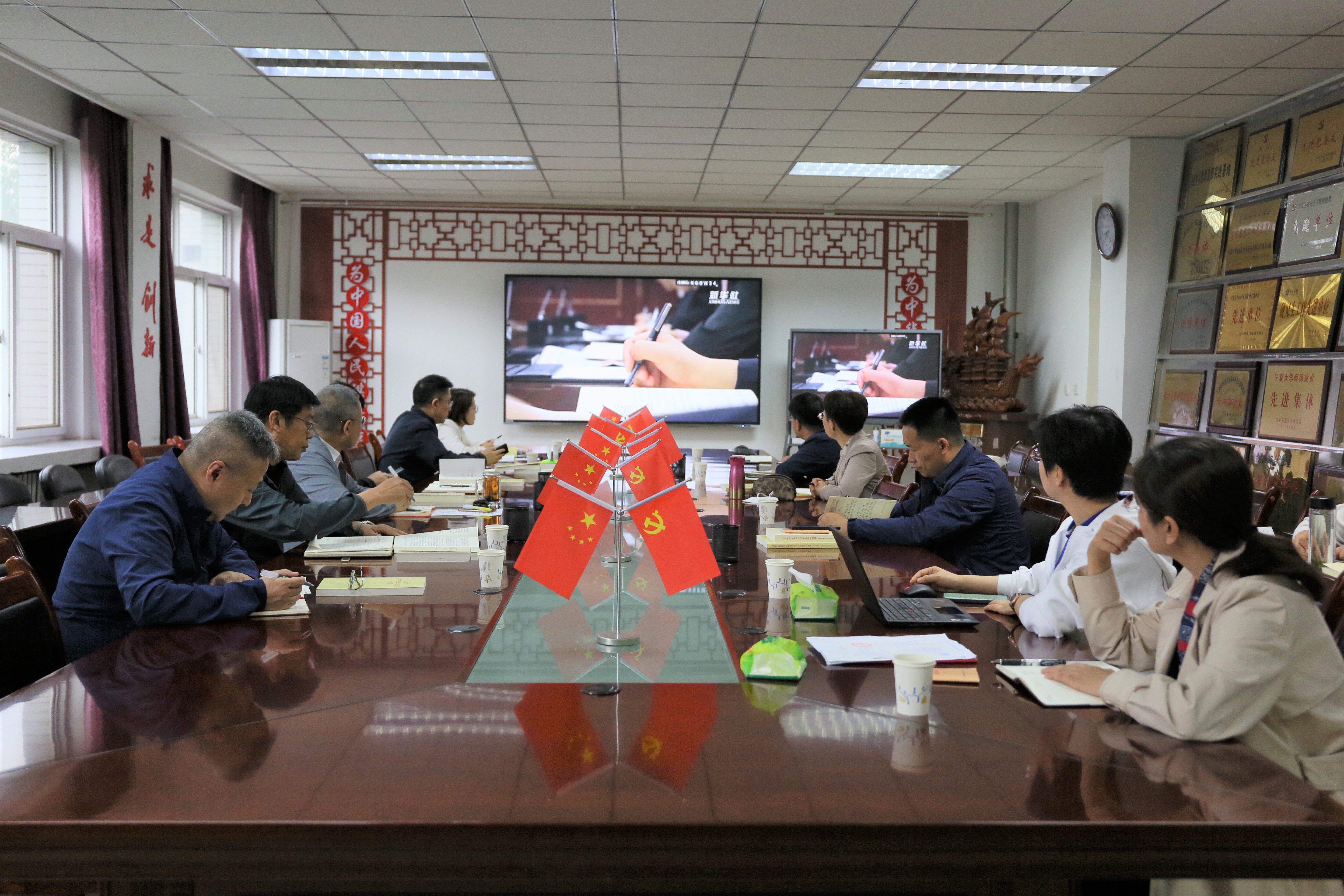 会上,观看了《坚持全面从严治党》《全面从严治党,锻造坚强领导力量》两个视频,随机抽取地理科学与规划学院党总支副书记李应海和建筑学院党总支副书记燕宁娜分别领学了《习近平新时代中国特色社会主义思想专题摘编》中的“以自我革命精神推进全面从严治党”和《习近平新时代中国特色社会主义思想学习纲要(2023年版)》中的“坚定不移全面从严治党”;抽取学部党委副书记刘翔未、土木与水利工程学院院长毛明杰、土木与水利工程学院副院长李王成结合自身分管工作谈如何推进全面从严治党。