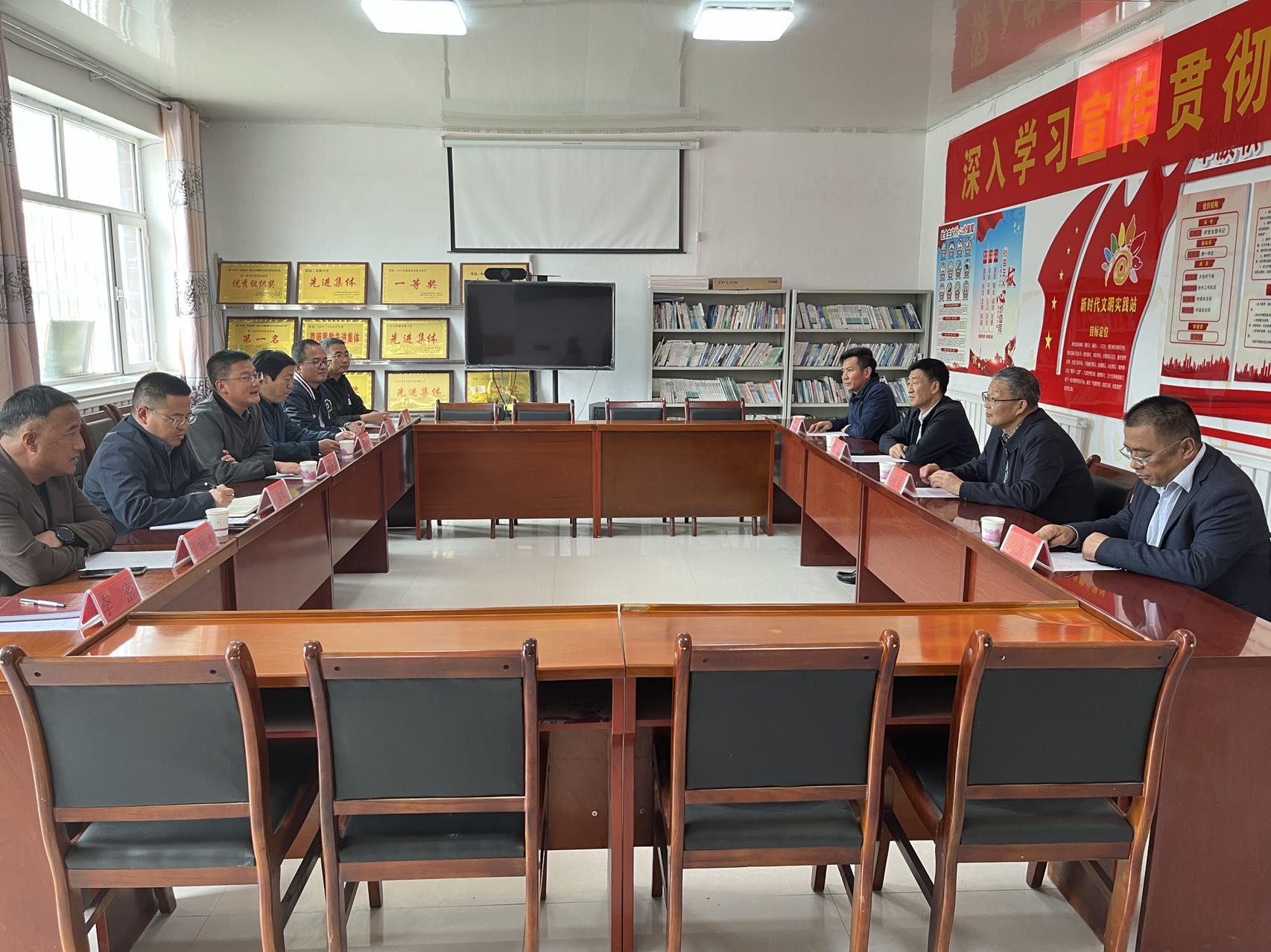 下午,调研组一行赶往固原市原州区炭山乡南坪村,与永利驻村工作队、镇领导、村“两委”进行座谈,炭山乡乡长张立园介绍了炭山乡的基本情况、产业发展、文化建设等,并对永利集团304官网的驻村帮扶表示感谢。