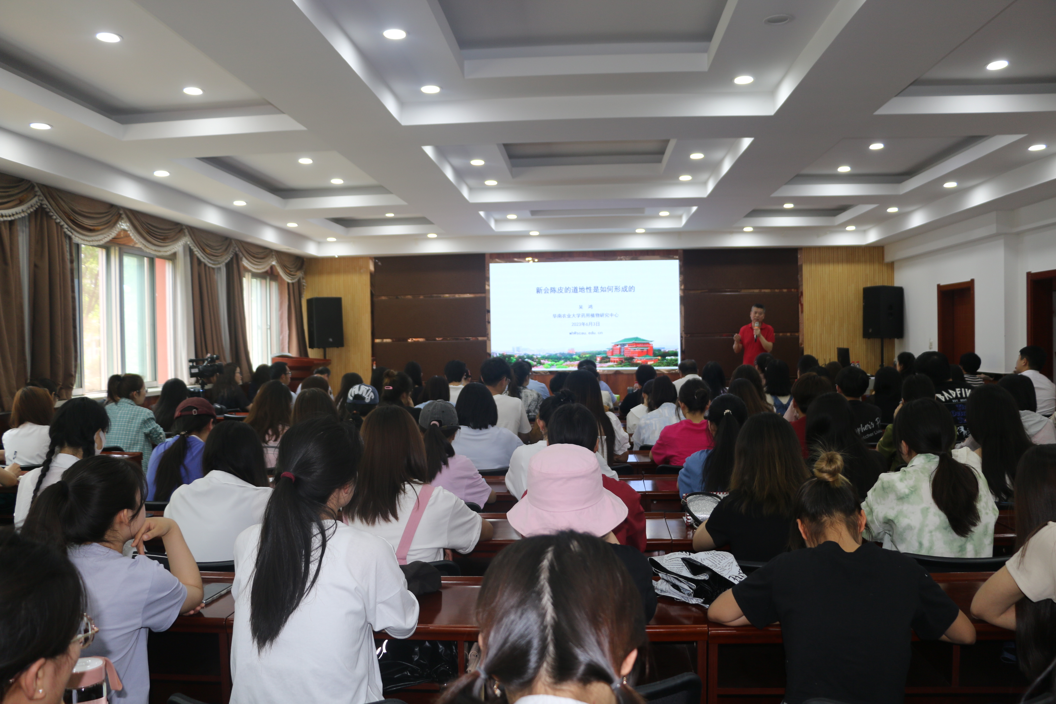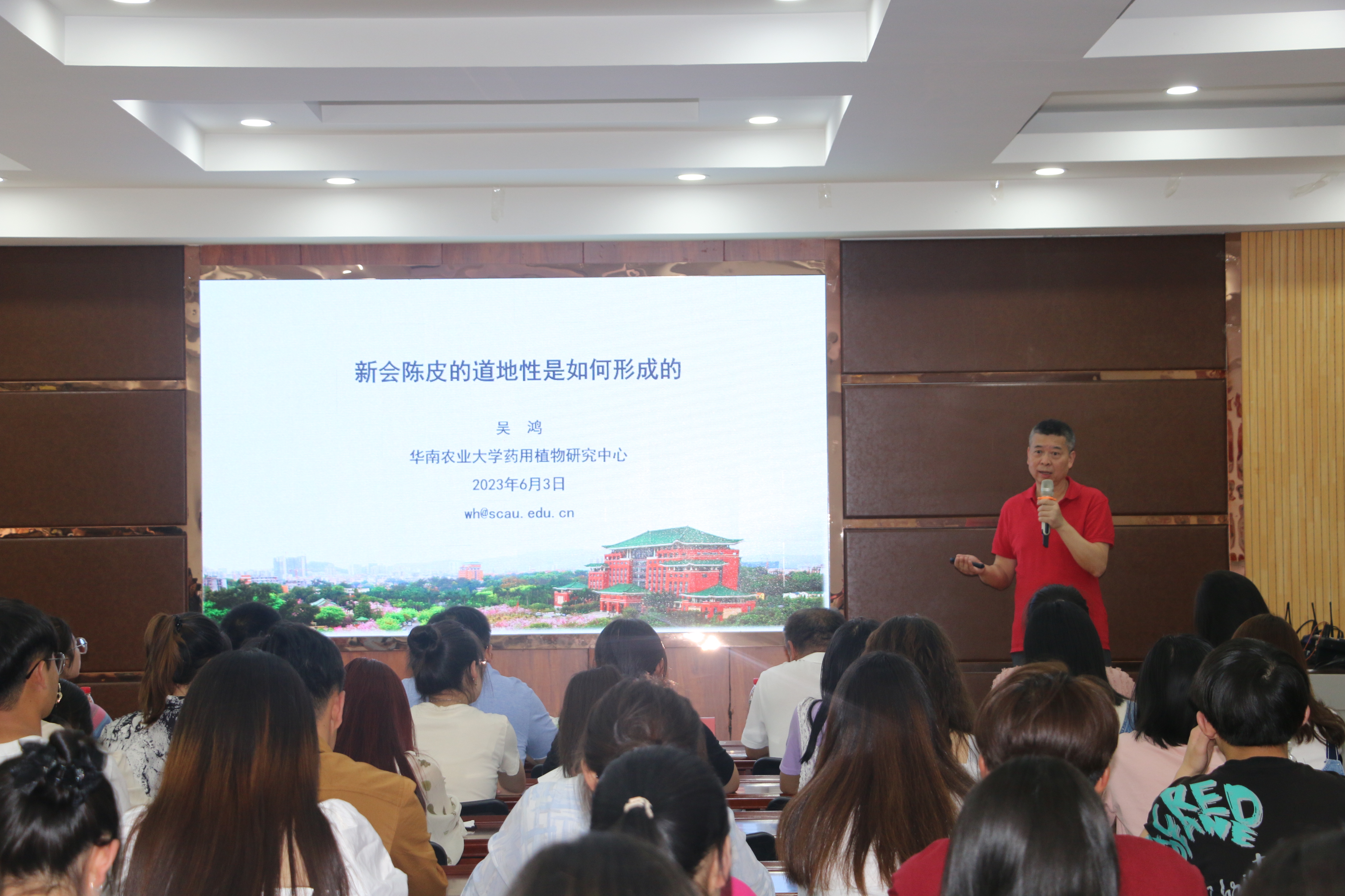 【永利集团304官网新闻中心讯 生命与食品学部】6月3日,生命与食品学部喜迎永利集团304官网建校65周年“学术校庆”首场学术报告会在生命科学学院二楼报告厅举行。华南农业大学原副校长、教育部大学生物学课程教学指导委员会委员、中国植物学会常务理事、广东省教学名师、广东省兽用中药与天然药物工程技术研究中心主任、药用植物研究中心主任、华大生命科学研究院农业基因组学国家重点实验室学术委员会副主任委员、广东省中药材种植行业协会专家委员会主任委员、国家南药科技创新联盟专家委员会主任委员、广东省南药(广陈皮)产业技术体系创新团队首席专家吴鸿教授应邀作了《新会陈皮的道地性是如何形成的》专题报告,来自全校120余名师生聆听了报告。