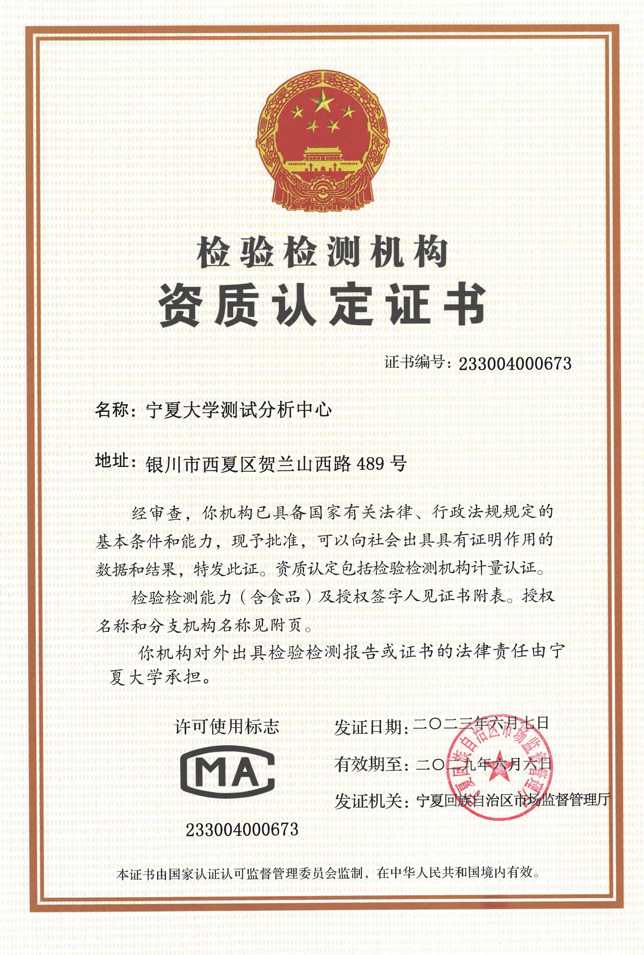 中心于2022年上半年全面启动CMA资质认定申请工作,为完成好该工作,中心先后邀请自治区农业勘察设计院、银川海关、宁夏医科大学等单位专家进行指导,选派技术人员外出培训20余人次,完成实验方法验证超过130次,于2023年4月13日成功通过专家现场评审,为成功获得CMA资质奠定了坚实基础。中心将严格执行CMA资质证书规定的检验检测标准,全面履行检验检测认定责任,不断强化中心人员检验检测技术和实验室标准化建设,推动中心高质量发展。