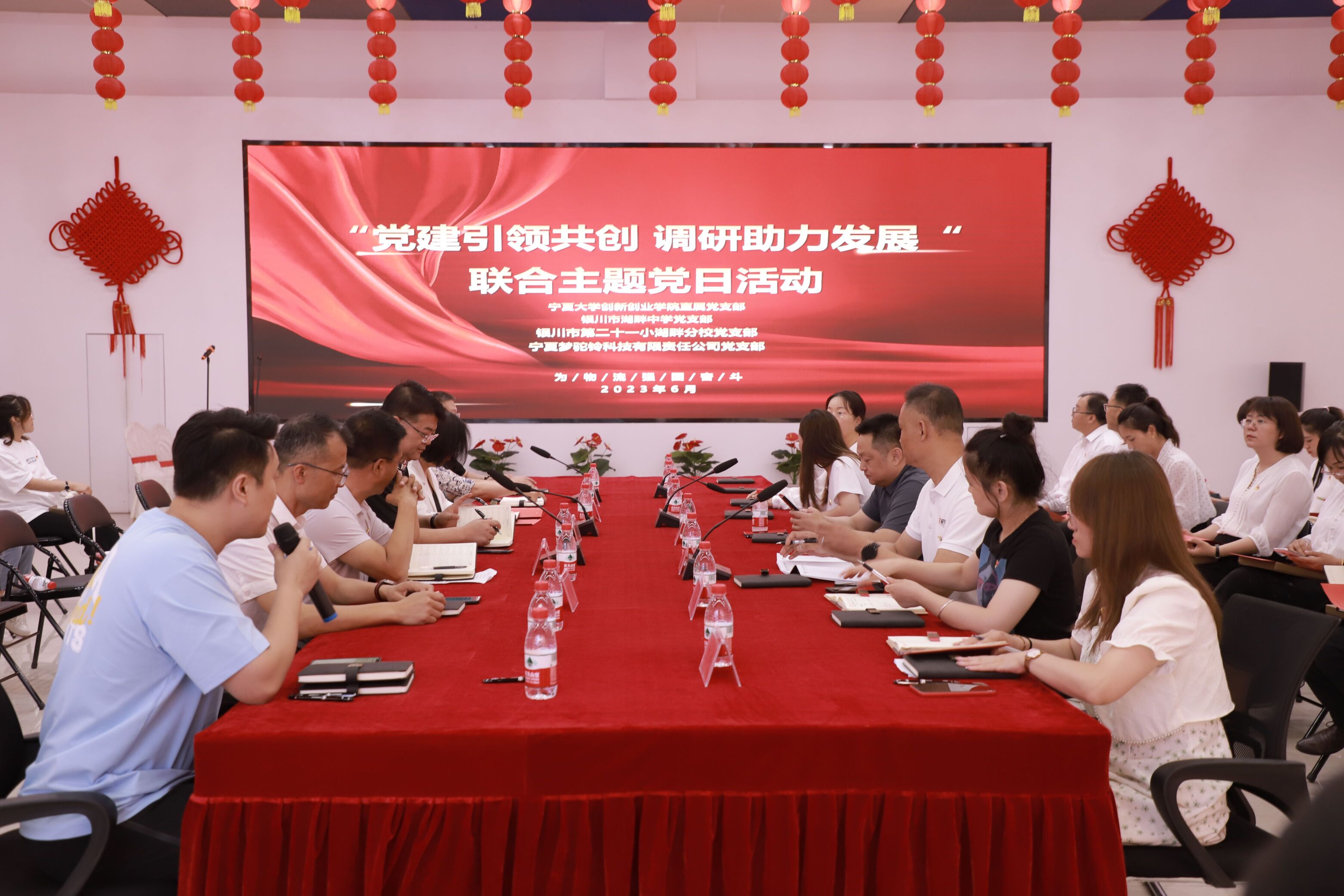 【永利集团304官网新闻中心讯 创新创业学院】为深入推进主题教育,持续科技创新赋能基础教育,6月25日,创新创业学院直属党支部联合银川市湖畔中学党支部、银川市第二十一小湖畔分校党支部、宁夏梦驼铃科技有限责任公司党支部开展“党建引领共创 调研助力发展”联合党建暨主题教育调研活动。