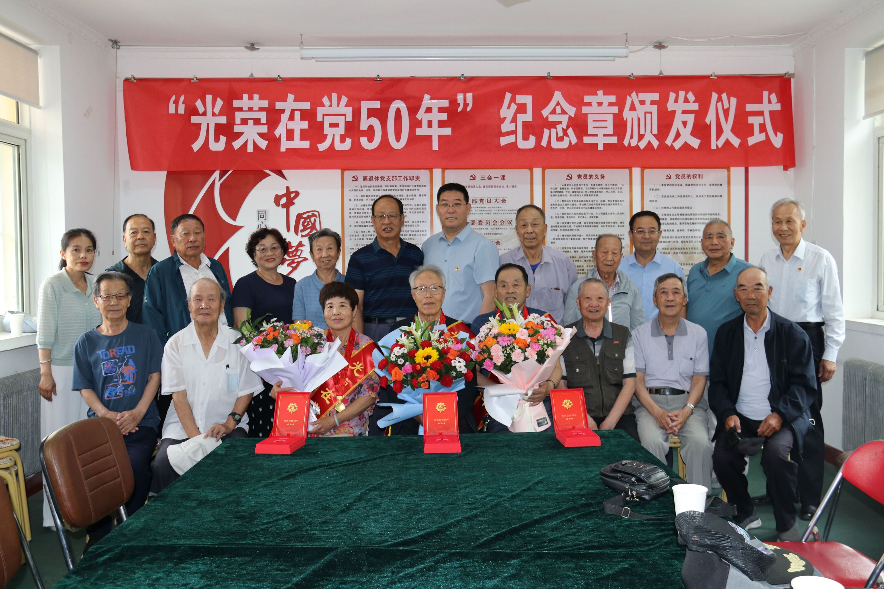 【永利集团304官网新闻中心讯 离退休人员服务处】为贯彻落实习近平新时代中国特色社会主义思想,深入学习党的二十大精神,进一步增强党员的荣誉感、归属感和使命感。近日,离退休人员服务处党委通过集中颁发和上门慰问等方式为党龄达到50年的17位优秀老党员颁发“光荣在党50年”纪念章。