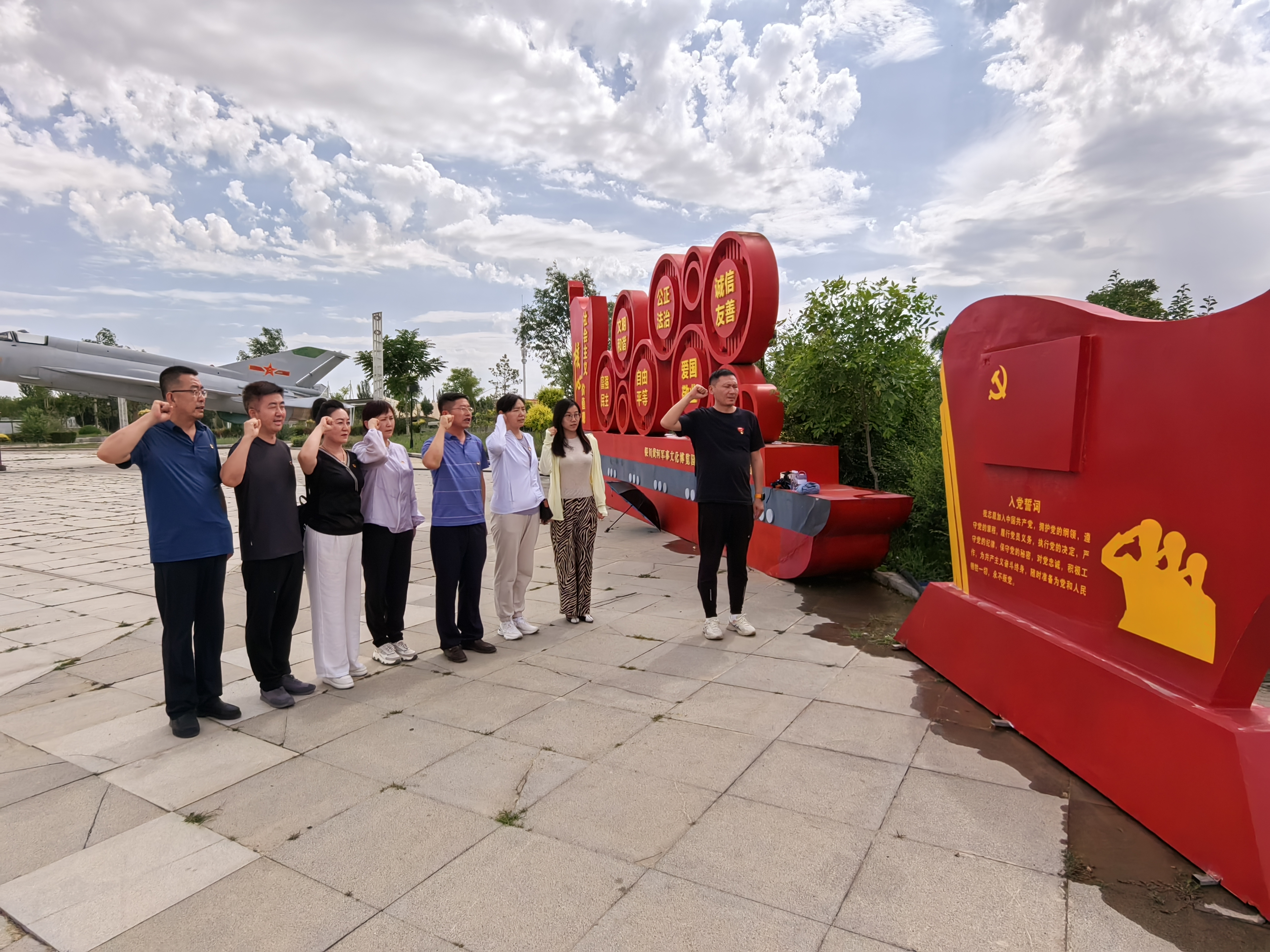 在银川黄河军事文化博览园,党员们近距离参观了部分歼击机、防空装备等,进入“银川号”潜艇,参观了潜艇内部构造,切身体会了海军指战员的艰苦工作环境,通过近距离接触人民海军功勋战舰,老师们深切感受到了人民军队现代化建设的铿锵步履。