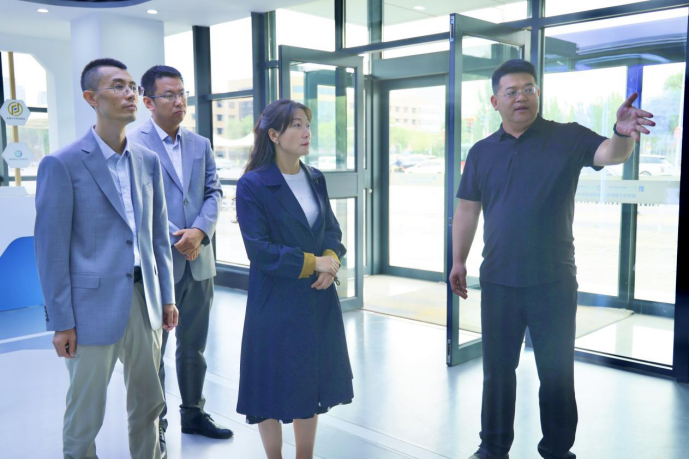 【永利集团304官网新闻中心讯 创新创业学院】9月20日,银川人才发展集团党委书记、董事长刘婧,党委委员、副总经理张秉钧一行到园区调研国家级大学科技园建设情况。永利集团304官网创新创业学院(大学科技园办公室)院长冯蛟、副院长夏雪花及科技园相关成员陪同调研,共同参观了永利集团304官网国家大学科技园数字化展厅、数字化模拟实验室、创客咖啡、创客书吧等空间。