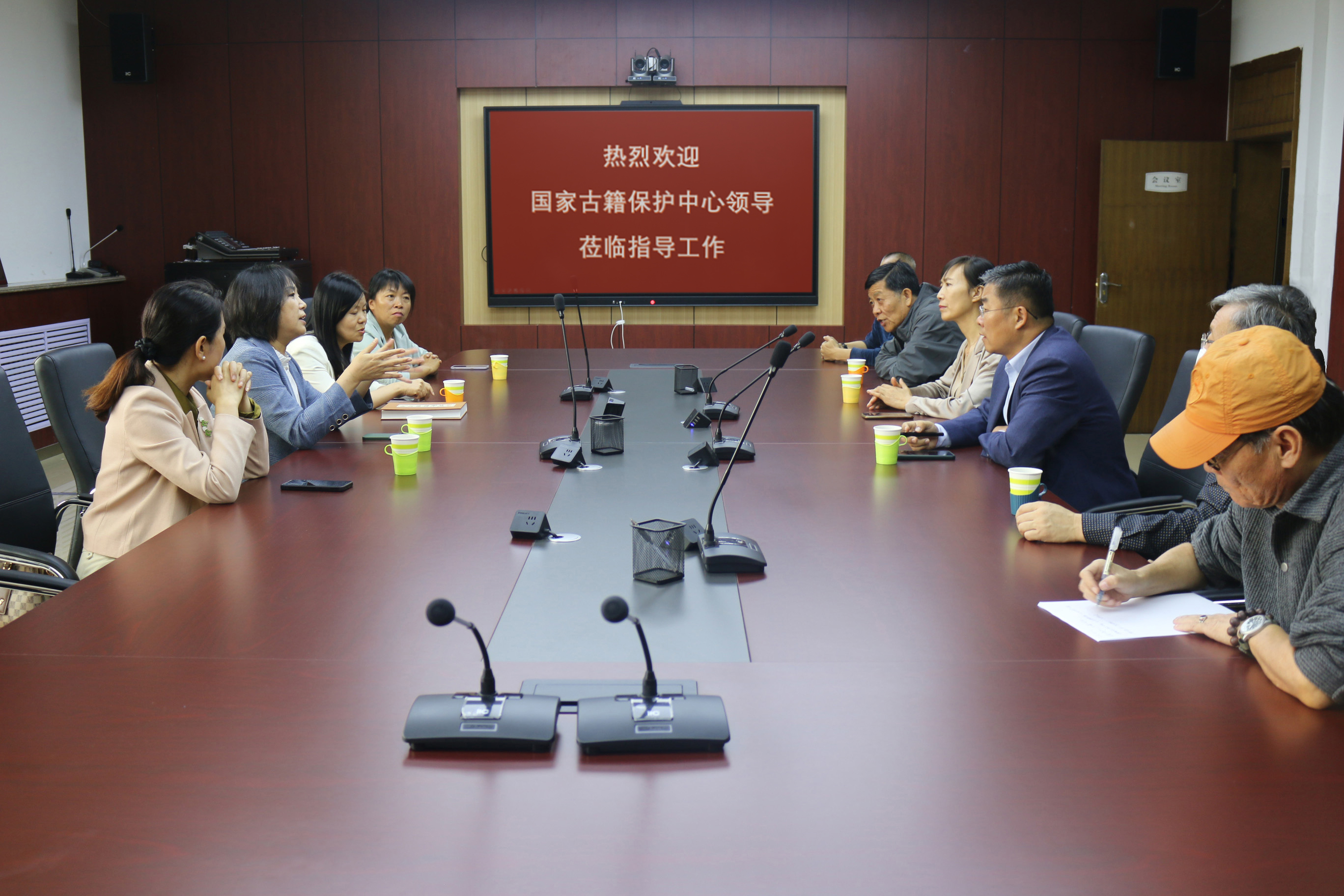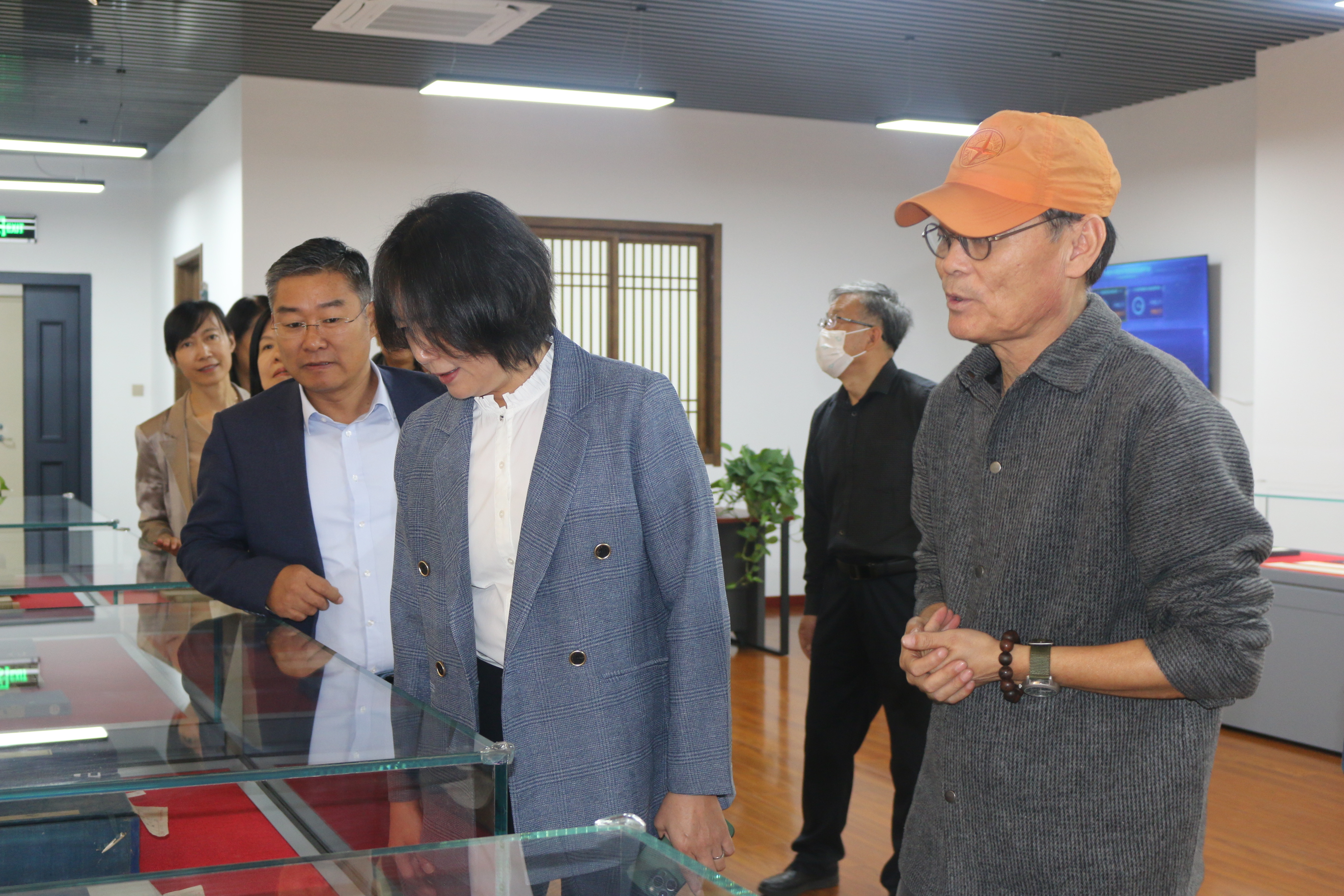 参观过程中,苗福生介绍了图书馆古文献特藏书库改造的相关情况以及图书馆古籍馆藏情况和保护现状。王红蕾分别考察了位于逸夫图书馆二楼的古籍保护展示中心、古籍修复工作室、古文献特藏库等,对图书馆古籍修复设备与陈列、善本库硬件设施配备与馆藏古籍保护措施等相关工作进行了指导。双方重点围绕国家级古籍保护单位的申报、古籍修复问题、古籍人才培养问题进行沟通交流。