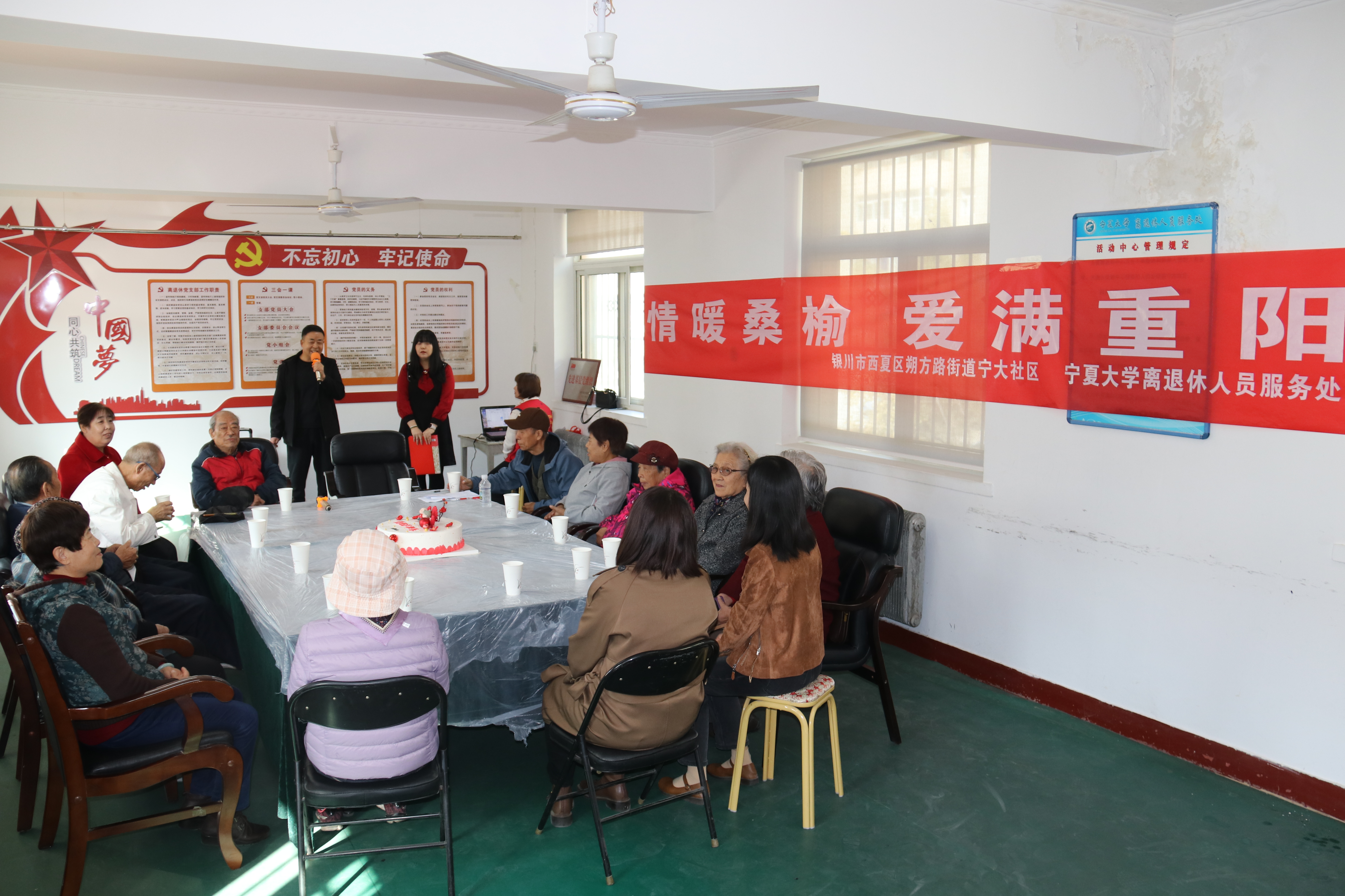 【永利集团304官网新闻中心讯 离退休人员服务处】秋高气爽,人寿花香。10月23日,永利集团304官网离退休人员服务处和银川市西夏区朔方路街道永利社区在怀远校区离退休人员活动中心共同举办重阳节联谊活动,邀请学仕园七十岁、八十岁、九十岁10名退休老教师代表参加了活动,给他们集体过生日。