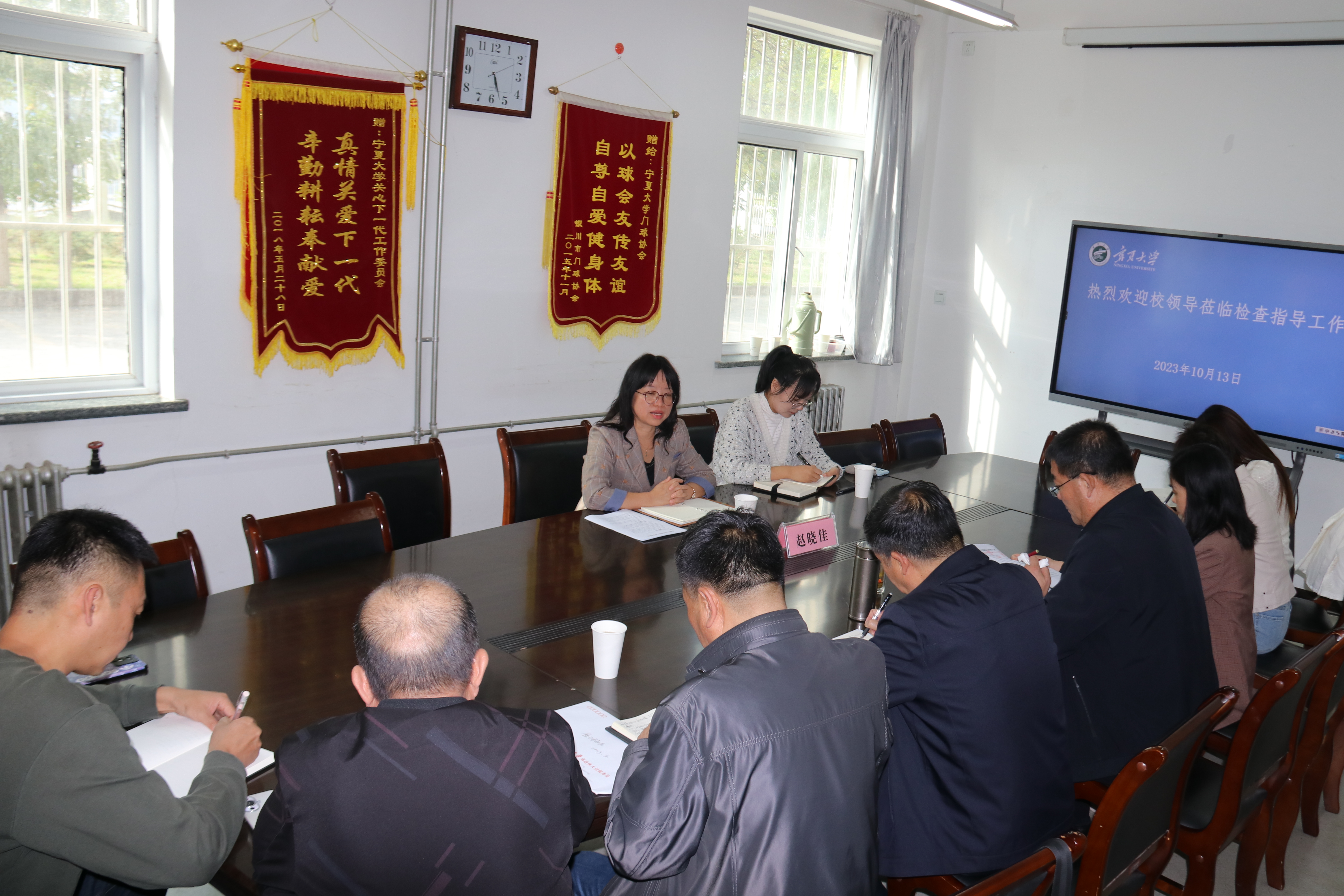 赵晓佳听取了离退休人员服务处党委书记、处长贺生斌和校关工委常务副主任孙宝德的工作汇报。她充分肯定了离退休人员服务处各项工作和关心下一代工作所取得的成效。她表示,广大离退休教职工是学校的宝贵财富,学校高度重视和关心,要继续加强离退休党建工作,增强主动服务的意识,把为老服务工作做得更细、更实,深入了解老同志的思想动态和“急难愁盼”问题,充分发挥好老同志的优势作用,促进老同志围绕学校立德树人中心工作,在关心下一代、教学督导等工作中继续贡献智慧和力量,同时要加强老年文化阵地建设和离退休工作队伍建设,用心用情精准服务,推动永利新时代离退休工作高质量发展。