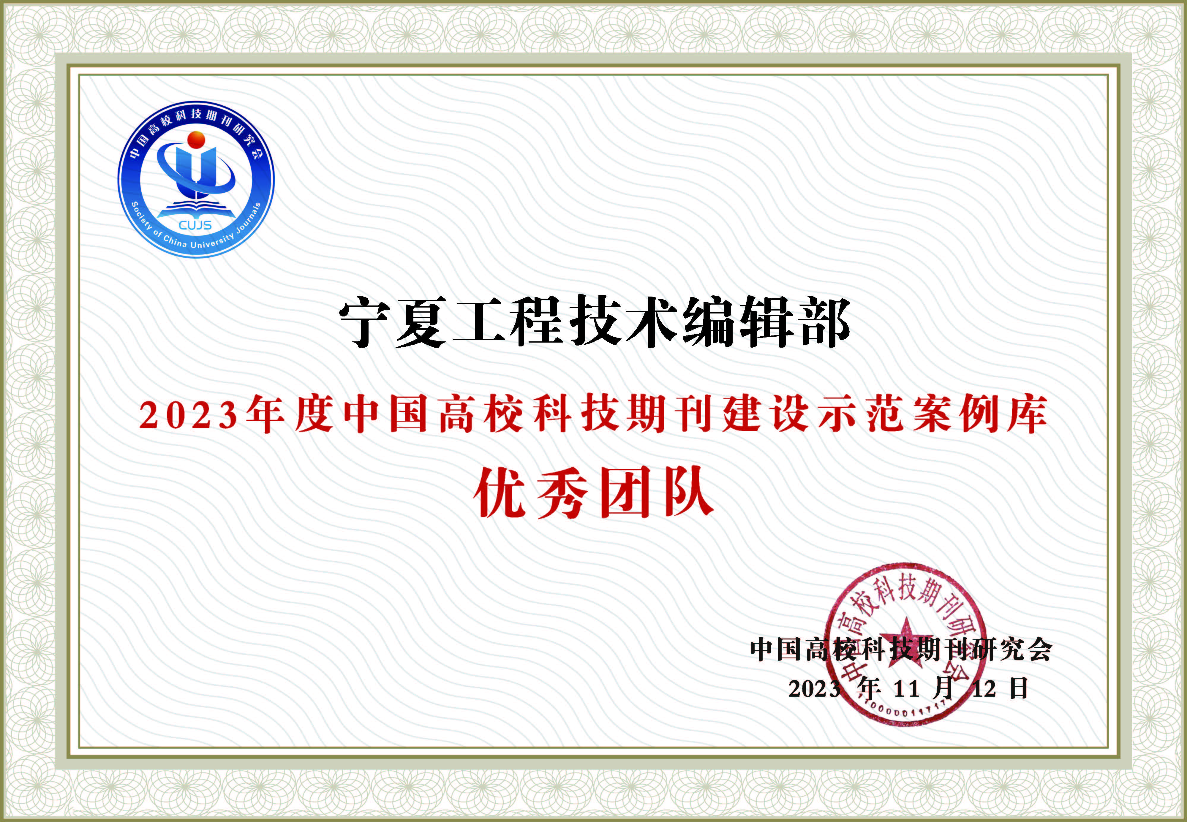 《永利集团304官网学报(自然科学版)》和《宁夏工程技术》编辑部入选“2023年度中国高校科技期刊建设示范案例库·优秀团队”。